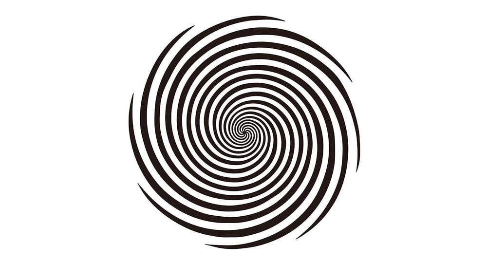 新作長編映像《i n v a s i o n》(2020〜2022)は催眠術に使われる「渦巻き」がアイコンであり、この「回転」を表すフォルムは、以前から小谷が繰り返し作品に取り入れてきたかたちだ。本作では時間を跨ぎながら、渦巻きが多様な意味の暗喩として用いられ、映像全編を通じて「魔術的なもの」を象徴する紋様として機能する。