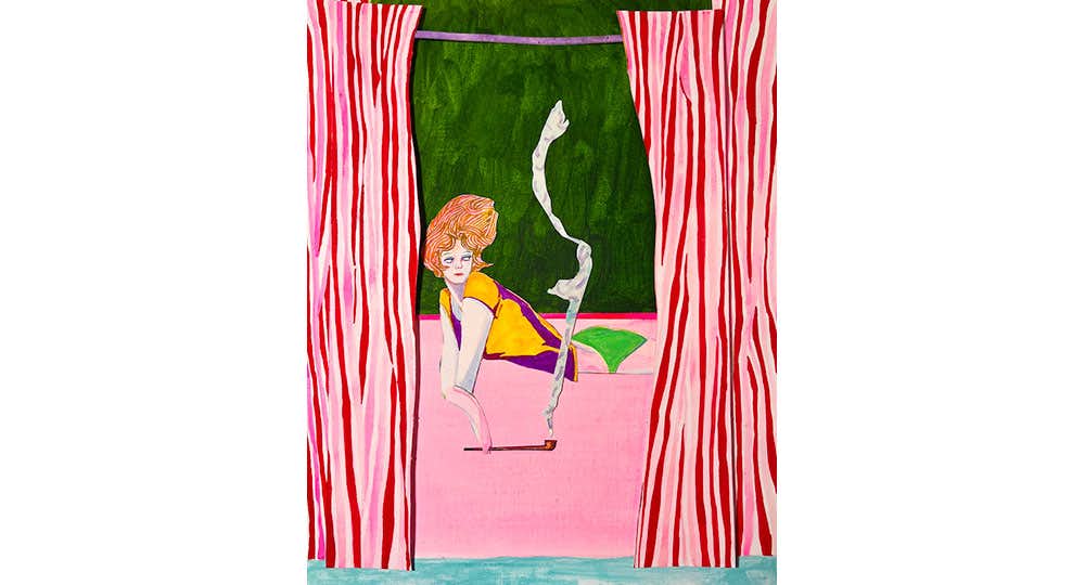 大竹は1988年生まれ。2016年にロンドン芸術大学を卒業。ペインティング、コラージュ、写真、シルクスクリーンなど多様な技法を⽤いて精力的に作品を発表している。2020年にPARCO MUSEUM(東京)、翌年には心斎橋PARCO(大阪)にて大規模個展を行い、脚光を浴びる。