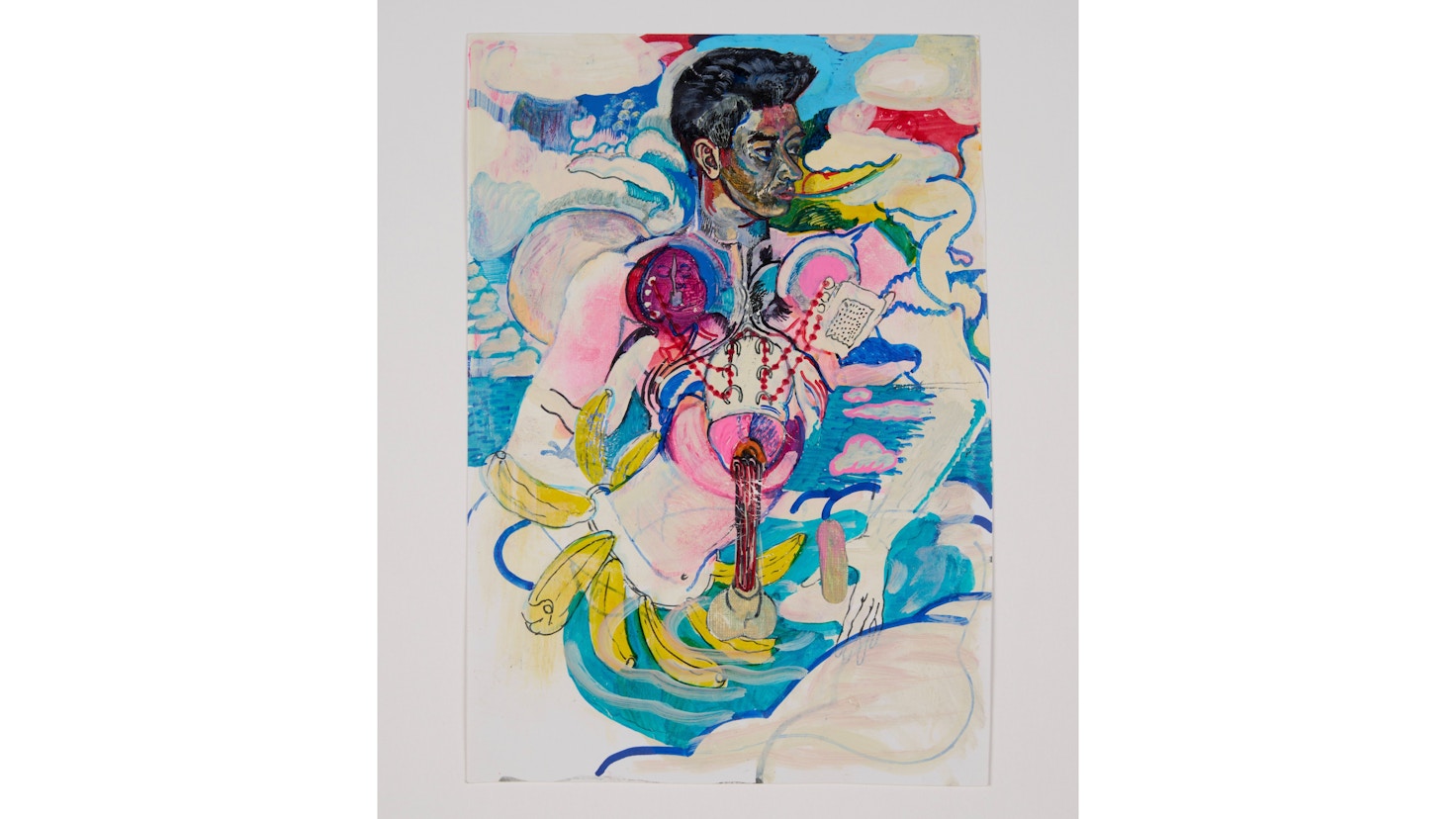青木は新作の絵画2点を、沖は2022年に神奈川県立近代美術館 鎌倉別館で発表した刺繍作品を展示。佐藤は2014年頃の未公開ドローイングや近作の絵画を、舘鼻は新作の「Heel-less Shoes」や絵画作品を発表する。そして、桑田とマッカーシーの近作が並ぶ。