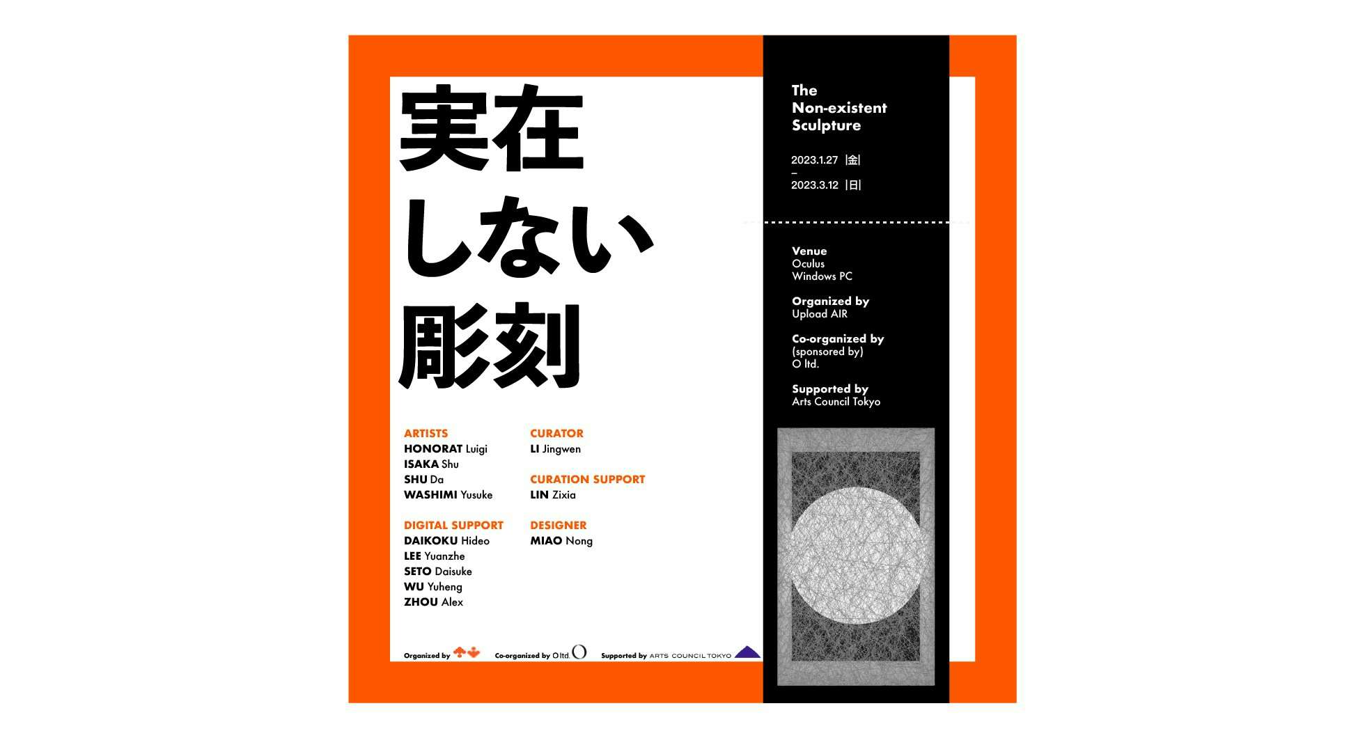 今回の展示は、ヴァーチャル空間において彫刻という表現の概念を問い直し、彫刻が提示するデジタル空間の在り方にも注目するもの。参加アーティストは、HONORAT Luigi、ISAKA Shu、WASHIMI Yusuke、SHU Da。