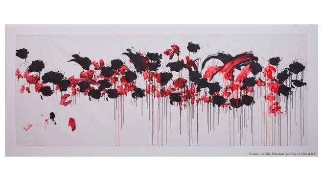 本展では、篠原有司男のエネルギッシュなパフォーマンス《ボクシング・ペインティング》によって制作された大作や昨年描かれた新作、篠原乃り子が自身の分身として描いた《Cutie》シリーズ、篠原アレックス空海による新作を中心に展示されている。