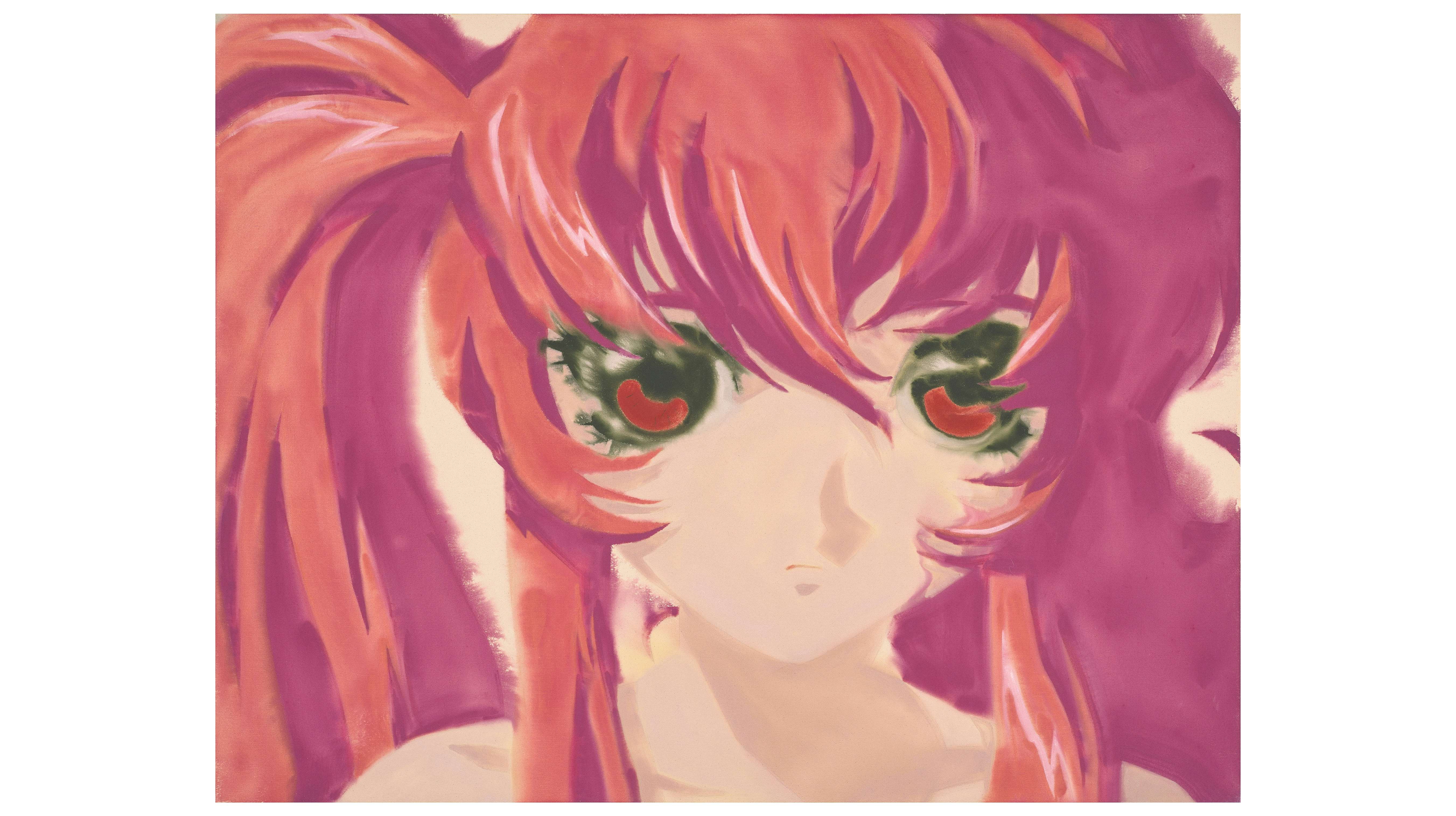 藍嘉比は1997年生まれ。日本の商業アニメーションを参考に、アニメ特有の陰影の明確な境界線と均一な色面による平面作品を制作。