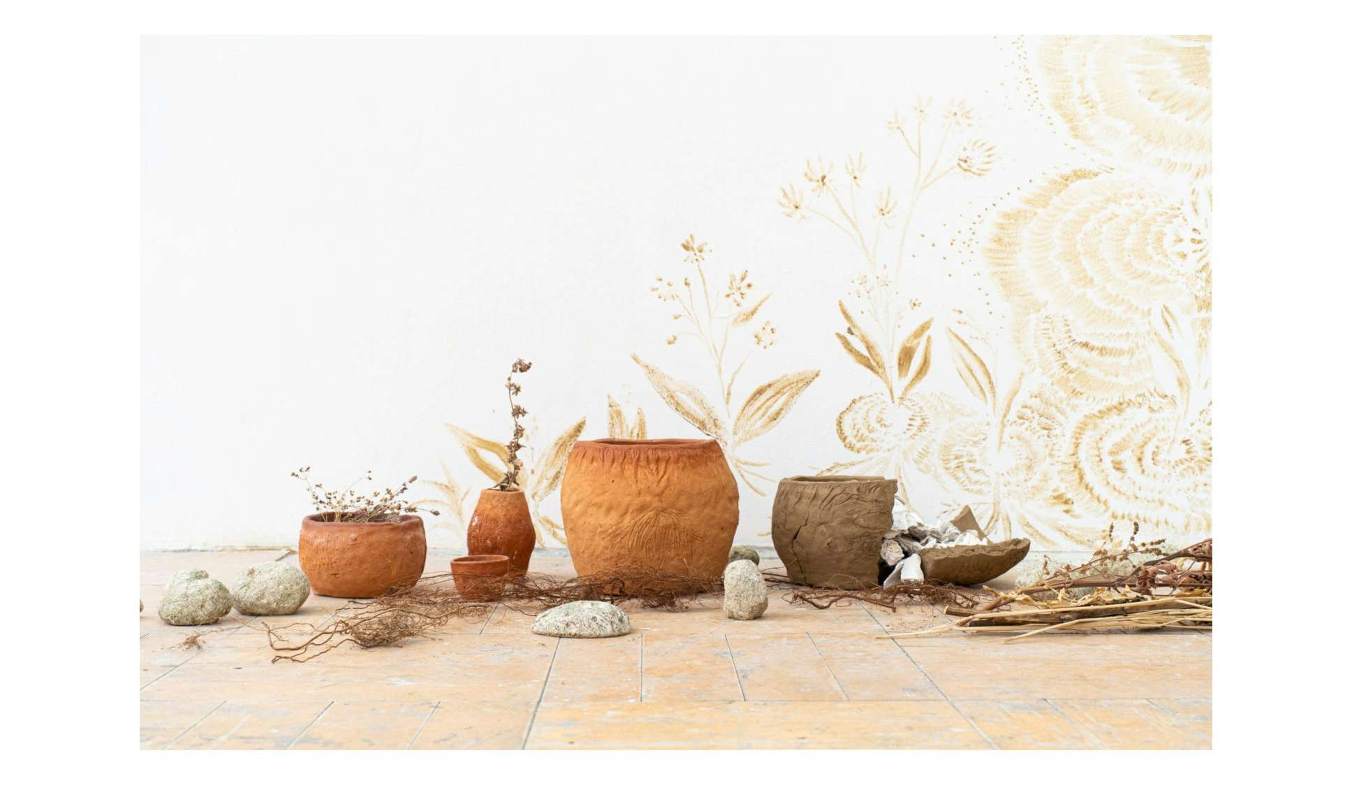 鈴木初音は神奈川県生まれ、東京藝術大学大学院美術研究科美術専攻油画研究領域壁画博士後期課程在籍中。鈴木は自身で菊芋を育て紙の原料をつくり、稲作の過程で川底に溜まる砂や牡蠣の殻からモルタルや石灰など制作のための原料を集めて作品を制作。
