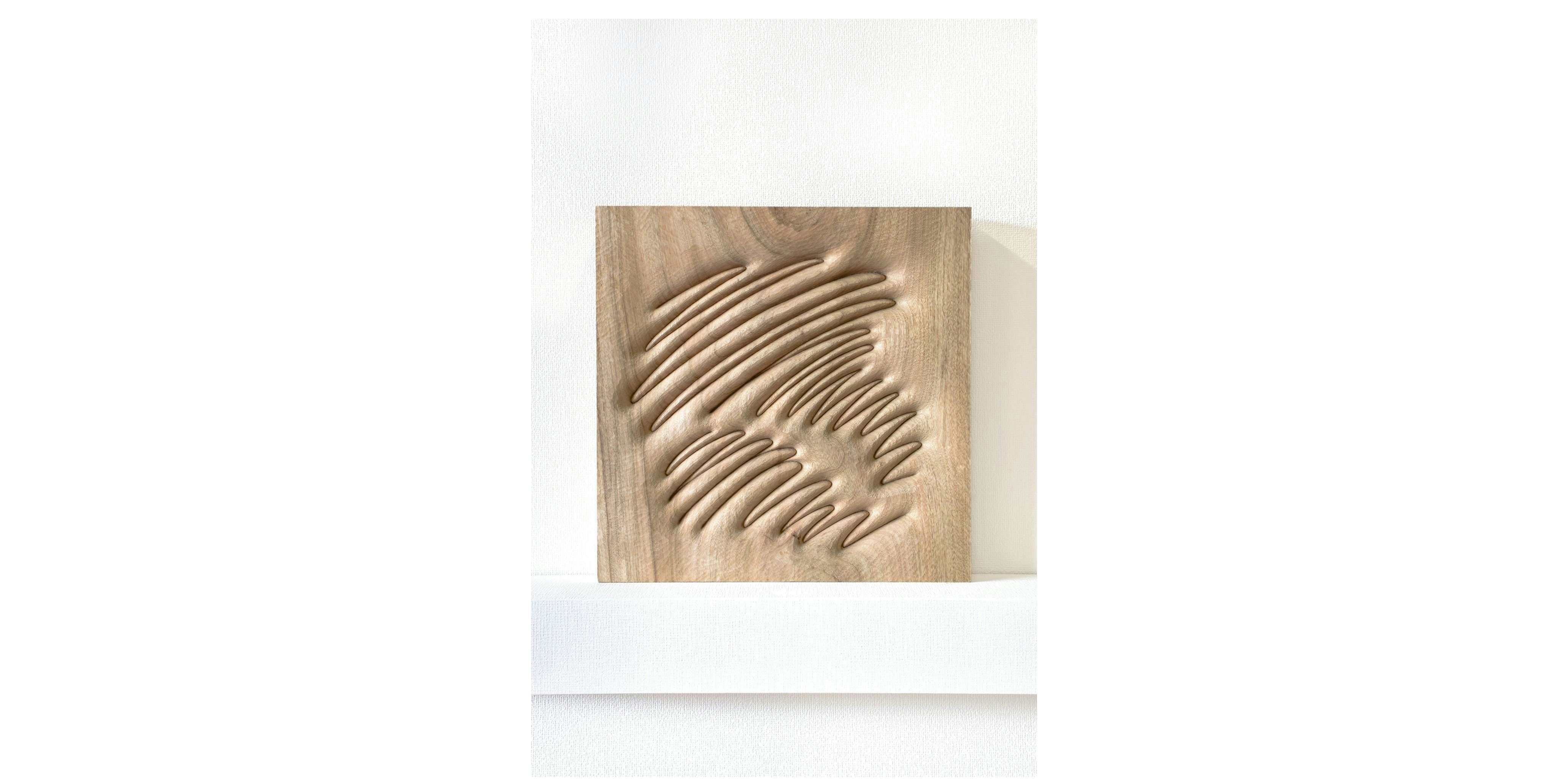 初期作から近年の作品までをつなげる試みとなる本展では、木を主軸に年輪と作家の時間を交差させた初期の作品から、特定の意味を持たない即興性に富んだ様々な線を彫った最新のレリーフ作品まで、幅広く展示。