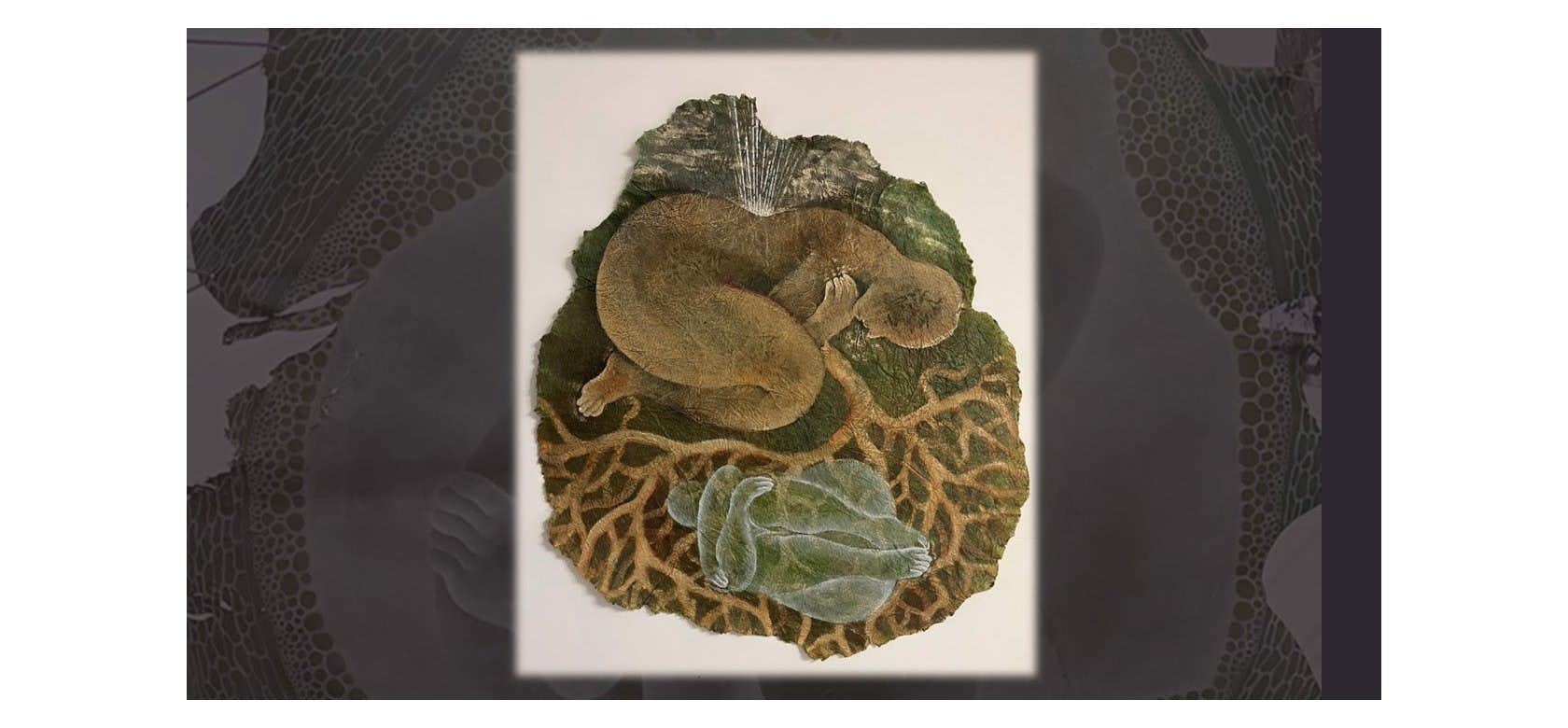 動植物や虫の特徴と人体が融合した未知の生物「リンジン」を皮革の上に描写するほか、「リンジン」が使っていたと想定したテラコッタ粘土によるユーモラスな作品、「リンジン」の研究者であるNによる手記や実験道具などをモチーフとした作品も制作している。