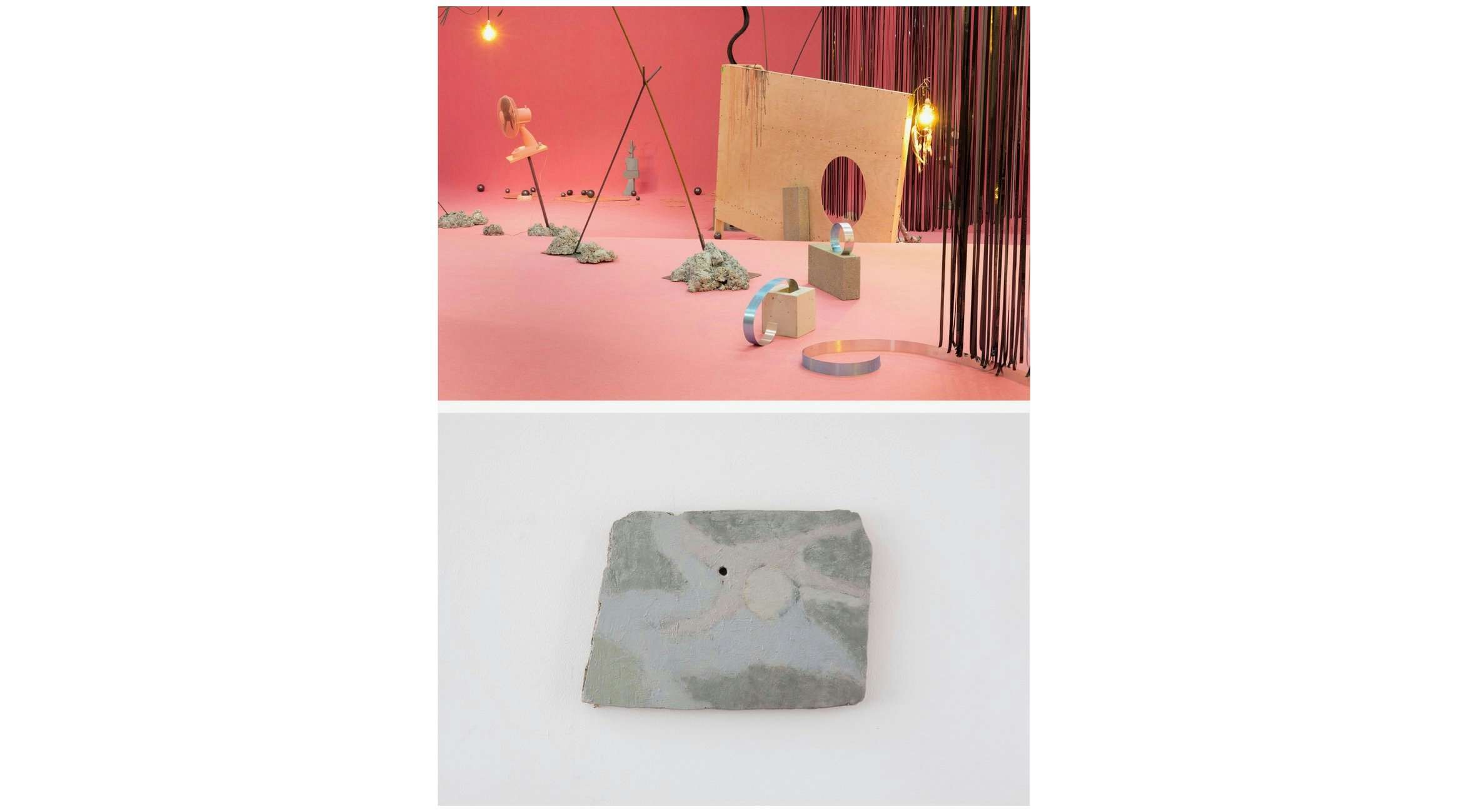 松﨑は1977年福岡生まれ、現在ロンドン在住。松﨑はジェスモナイト(Jesmonite)と呼ばれる水性樹脂を用いた支持体で作品を制作しており、自身の絵画の系譜をイギリスのコーンウォール地方に点在している穴の空いた岩、また灰色を基調とした抑制された色彩感覚に重ねている。松﨑は昨年はじめた野草採集や食事会の開催をきっかけに、以前より抱いていた風景についての考察を深め、環境とそれを取り巻く諸条件への眼差しは絵画的実践にも大きな影響を及ぼしている。
