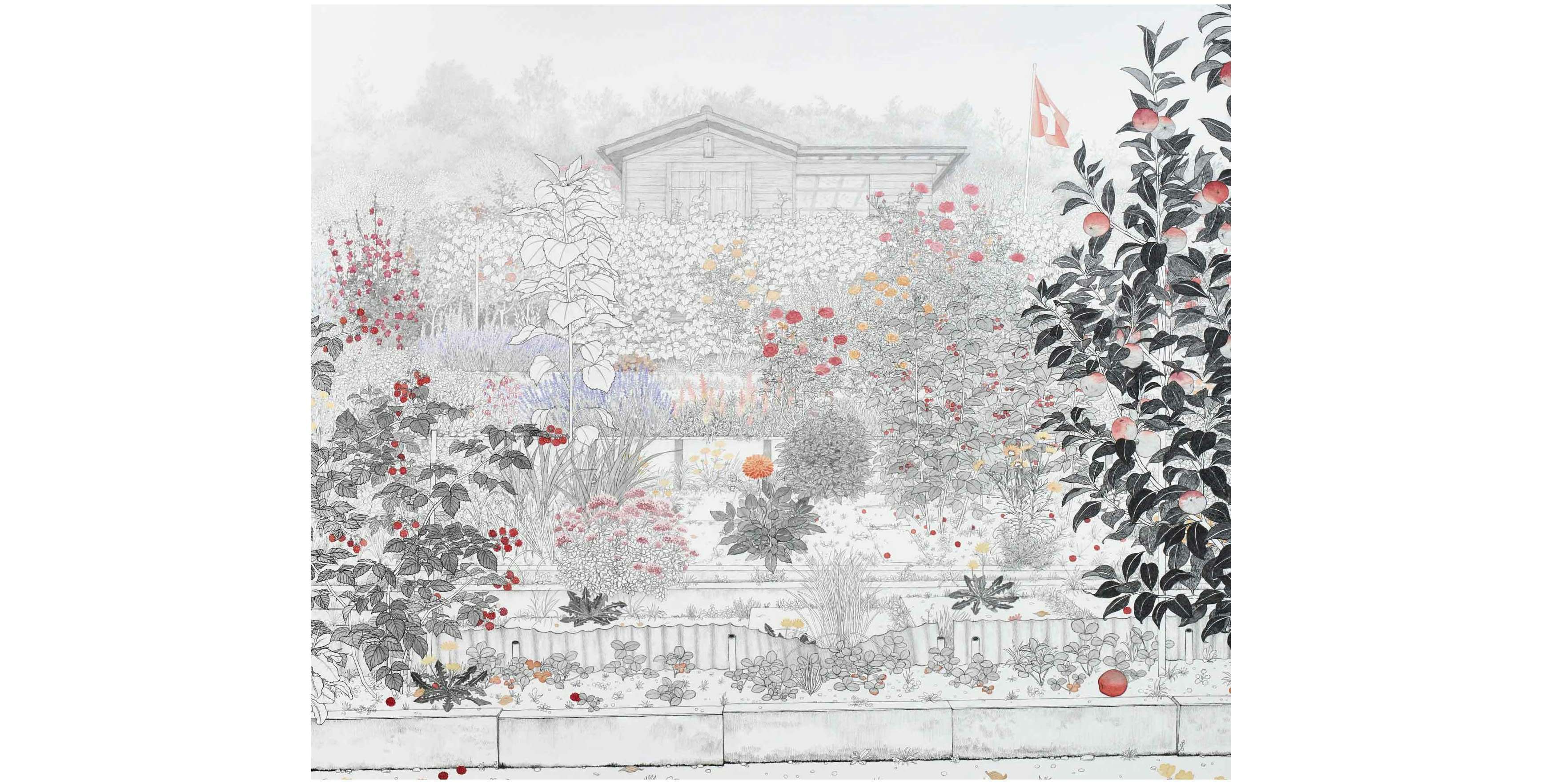 須藤は主に日本の住宅街をモチーフとしているが、本展では2019年にスイスで個展を行った際に訪れたチューリッヒの街並みを描いた新作が紹介されている。