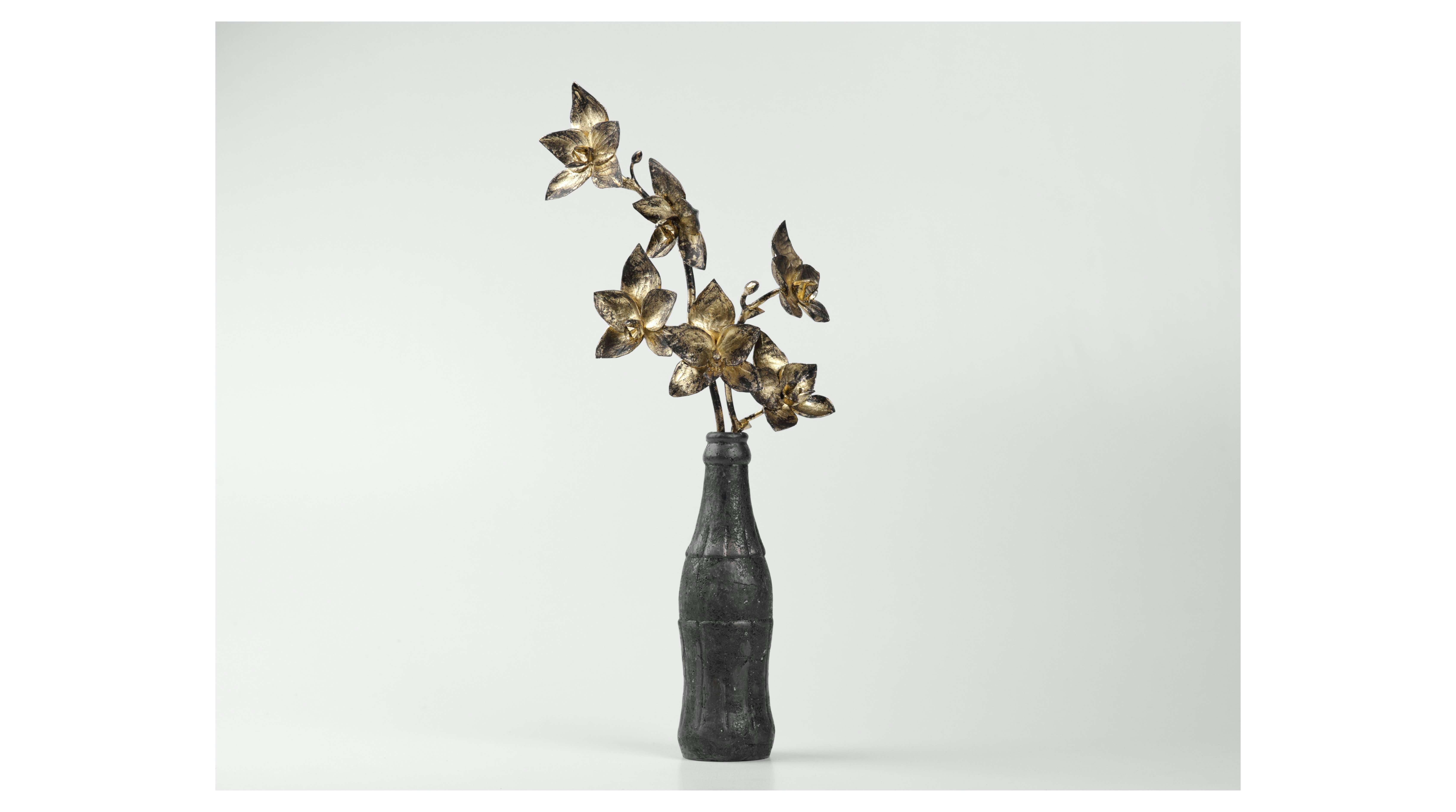長谷川は、木彫で再現した花びらや葉脈などの植物に、擬似漆や金箔を施した後、和蝋燭ですすけさせた作品を制作しており、これまで大麻草、芥子、薔薇、蓮、外来種の雑草など、固有の由来を持つ植物を、自ら手がけた様々な花器と組み合わせて発表してきた。