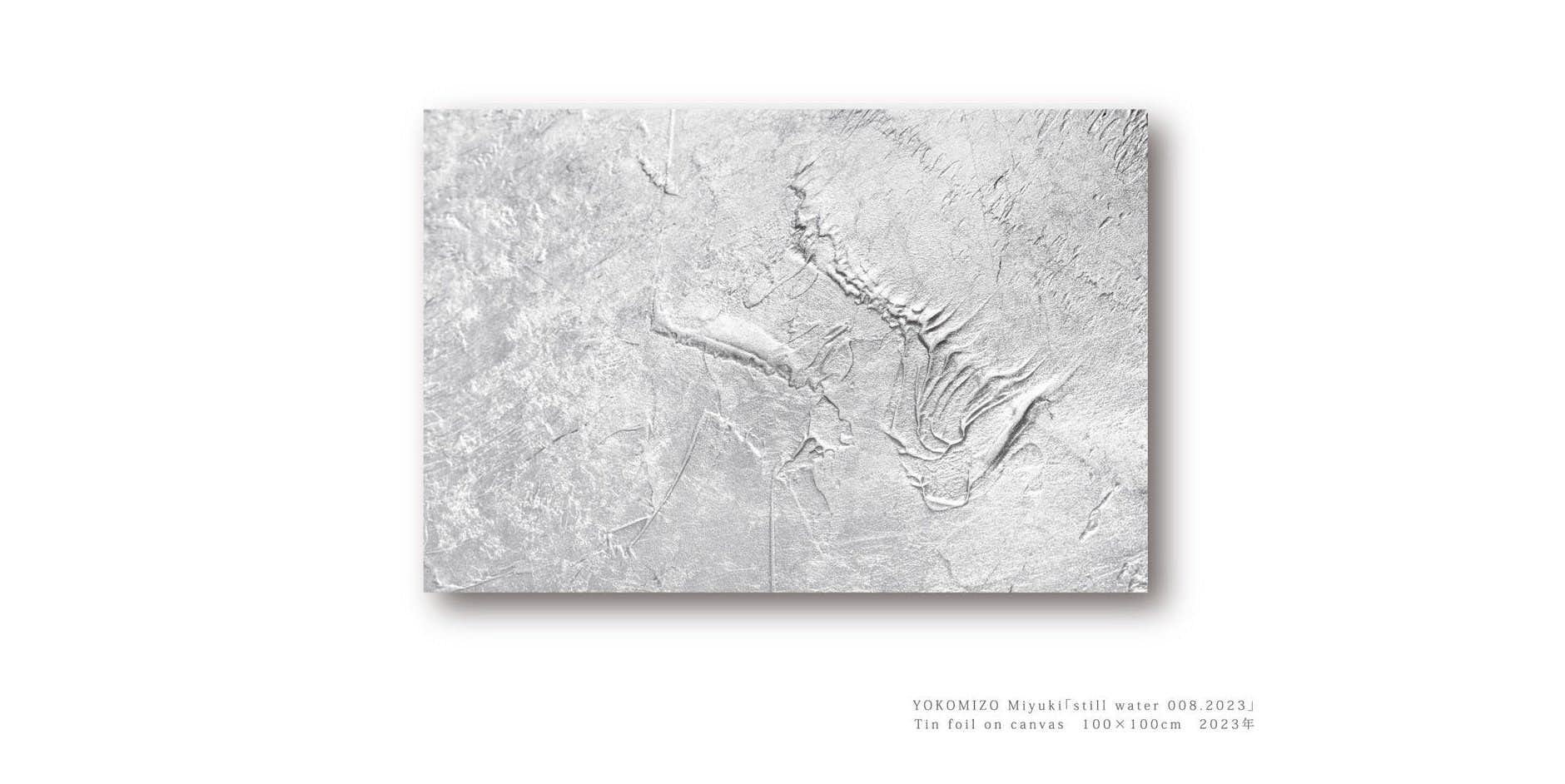 近年では、絵具を付着させた糸を弾いて立体的に積み上げていく「line」シリーズや「angle」シリーズなど、彫刻的な絵画作品の制作に注力している。本展では、これまでとは異なる手法を用いた新シリーズ「still water」を発表するという。