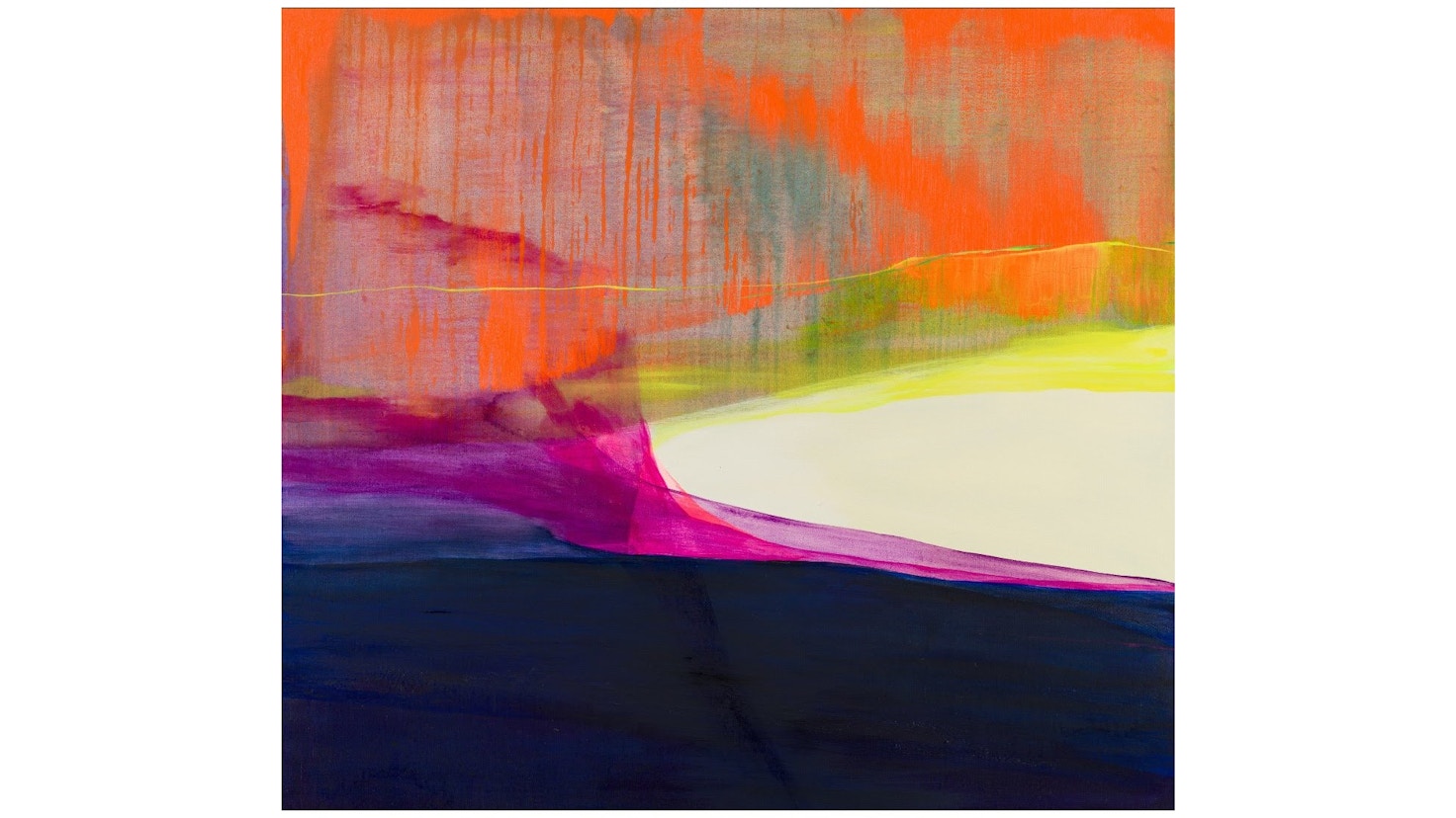 流は1975年大阪市に生まれ、97年に女子美術大学芸術学部絵画科洋画専攻を卒業。2002年に文化庁新進芸術家在外研修員としての渡米を機に08年までニューヨークに滞在し、04年には公益財団法人ポーラ美術振興財団在外研修員としてトルコにも滞在した。流は、各色をキャンバス上に薄い層にして伸ばし、乾いてから別の色の薄い層を重ねるという独自の手法によって作品を制作している。また日本固有の伝統色・顔料や染料についての研究を行ない、かつての画家たちの色使いを探求することで、自らの制作に役立てている。今回の展示では、流の最新シリーズ「In Between」から数点を展示する。