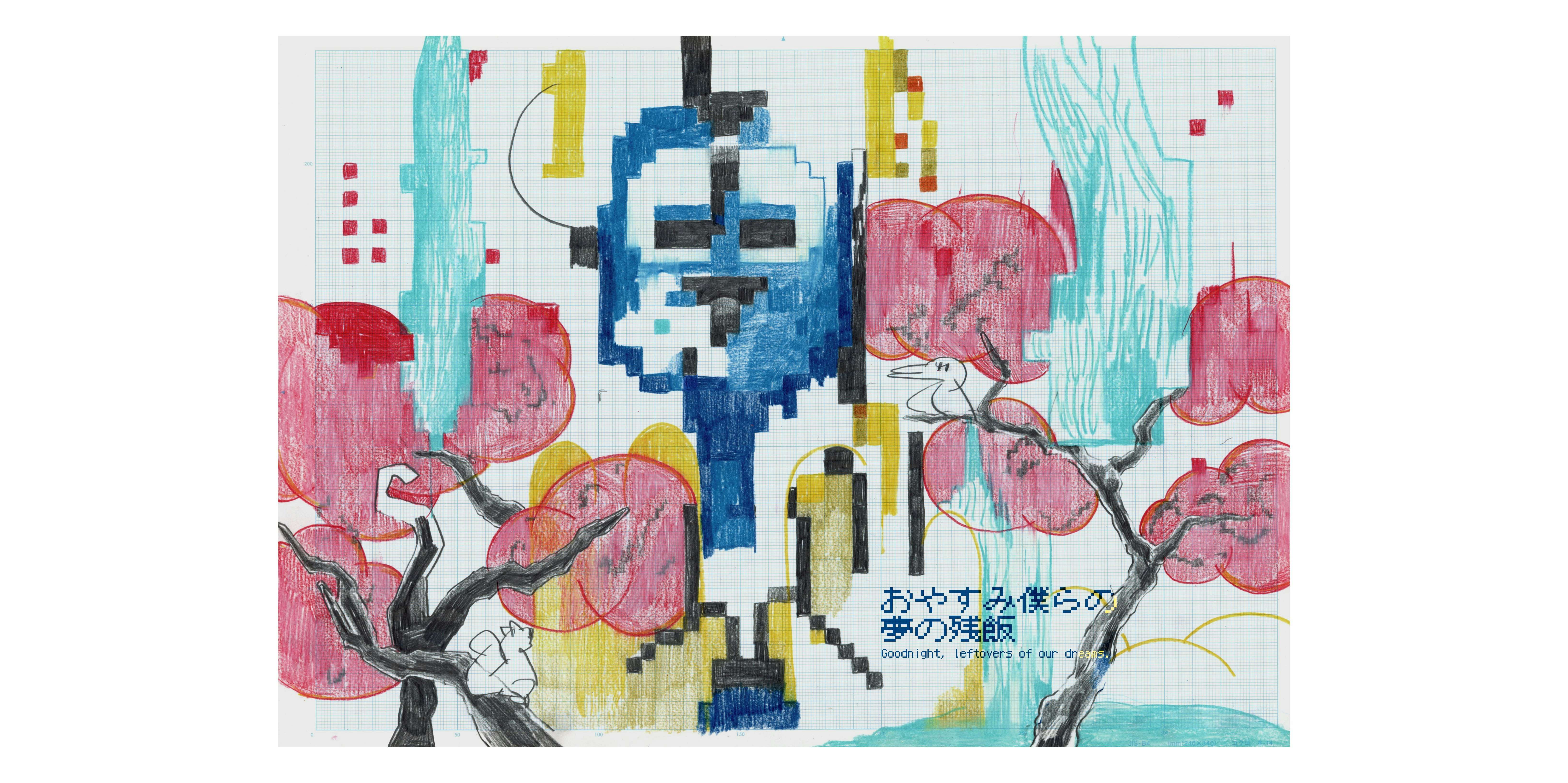 本展では、中国山水画の様式的影響から、室町期の禅宗社会で大きく発展した、日本的な山水画をモチーフとした新作ドローイングを発表している。