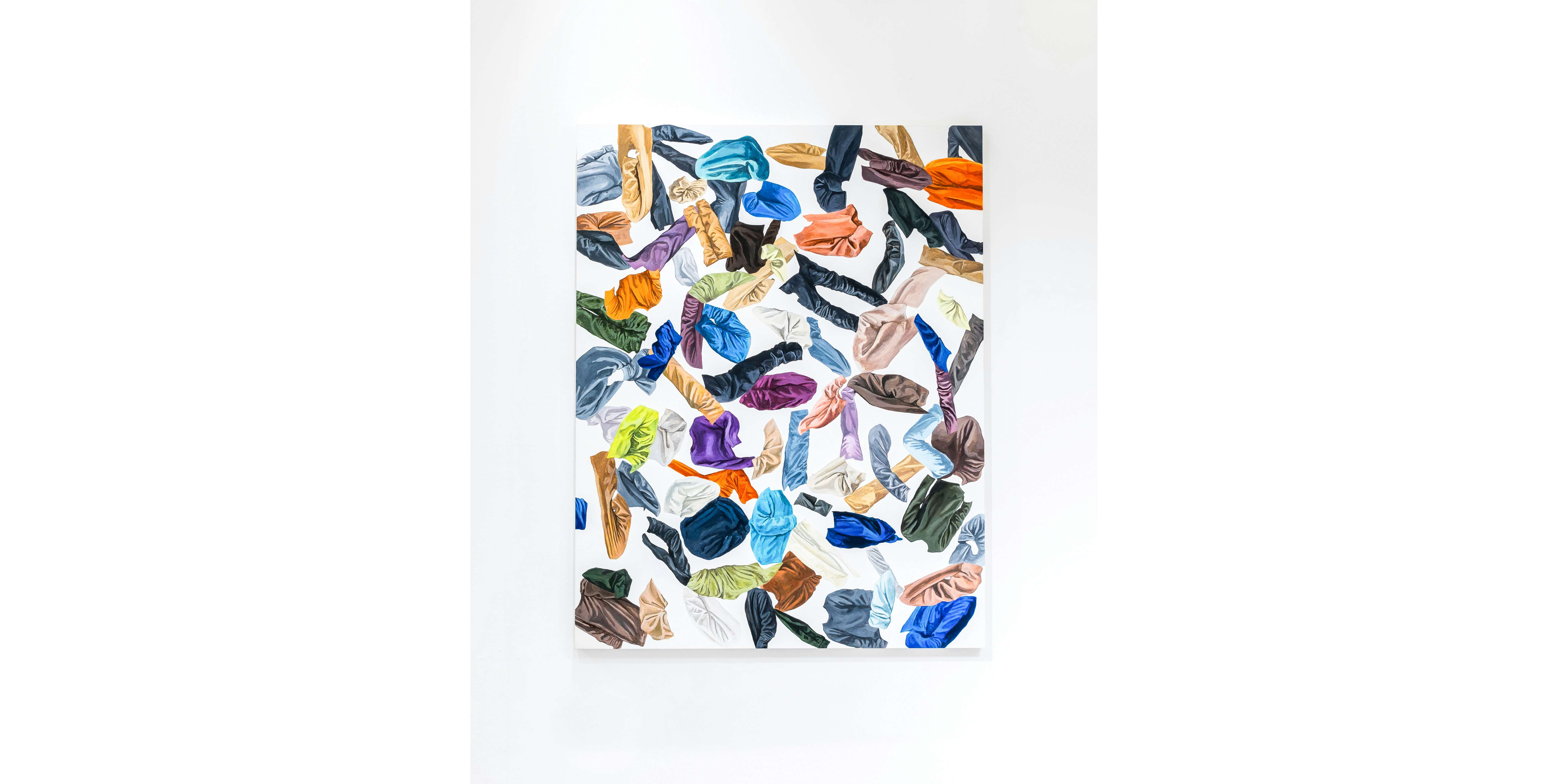 福岡で初の個展となる本展では、2015年以降に制作されたペインティングを展示。その作品には「見えるもの」だけでなく、たとえ「見えないもの」であっても存在する確かな質感、そこに流れる時間や空気などの意識を呼び覚まそうとする試みを感じることができるだろう。10年という歳月、移り変わる世界のなかで「生きる意味とは何か」を問い続けてきた東條が描いた「服のしわ」は、鑑賞者に「存在する」という事実と意義への思案を促すのではないだろうか。