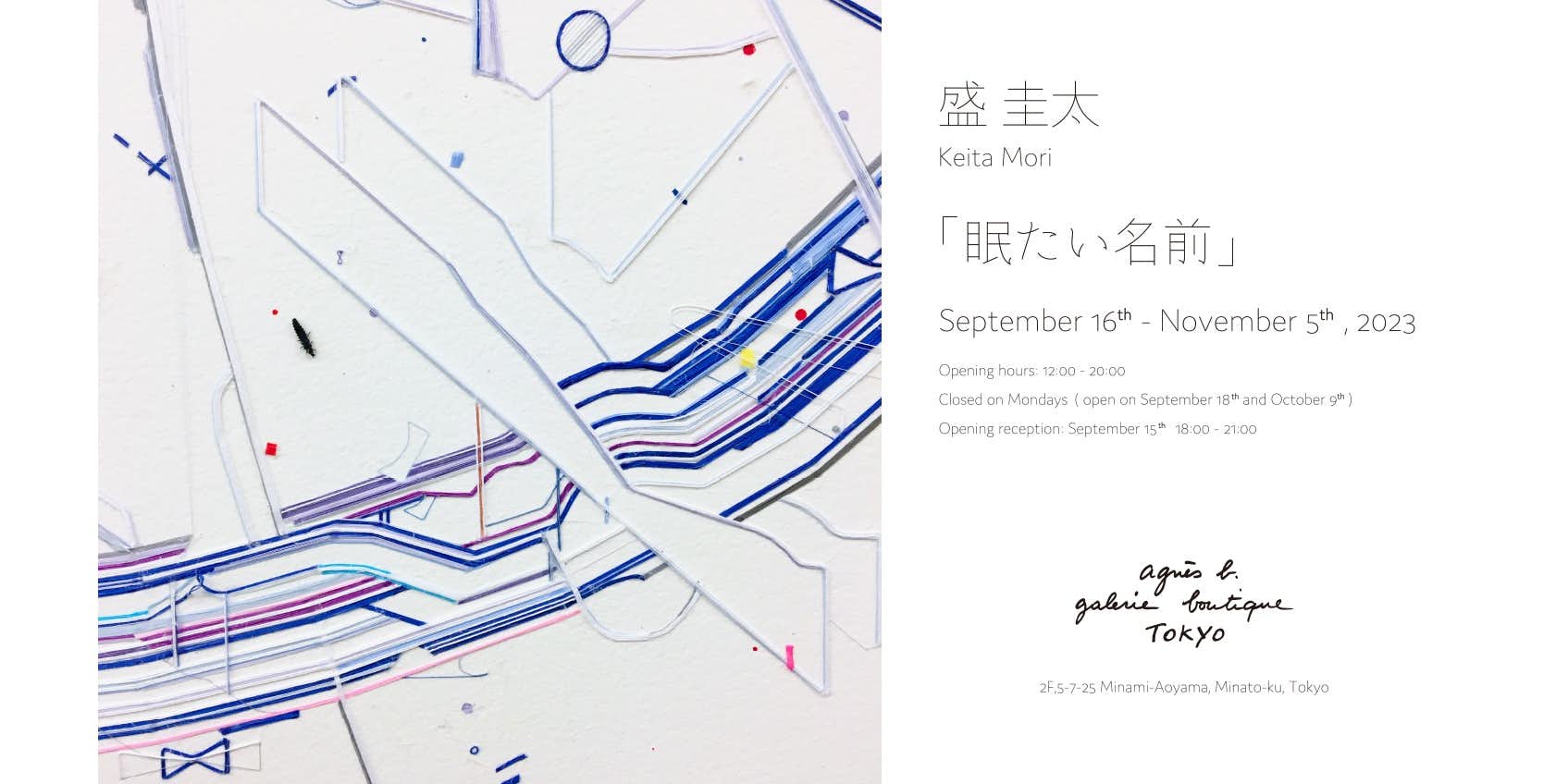 アニエスベー ギャラリー ブティックで、盛圭太の個展「眠たい名前」が開催されている。