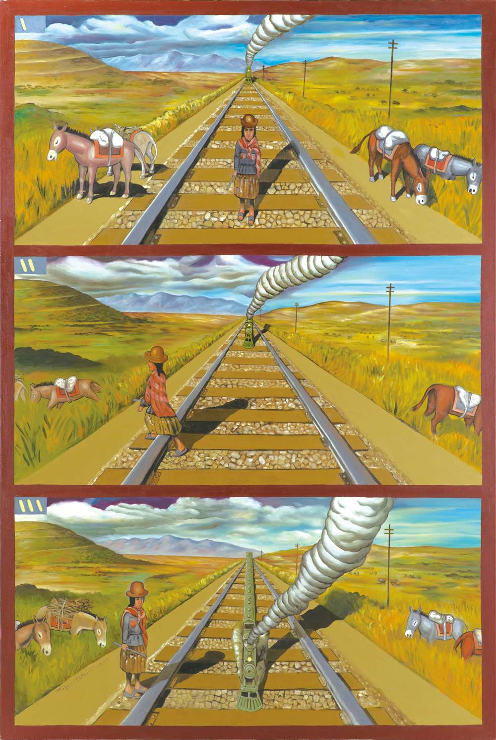 始発駅では、東京駅から線路のある風景まで、日本画、洋画、写真、資料などを展示。2駅目、鉄道がつなぐ「都市と郊外」では、現在とは異なる東京の姿を写す洋画、作家の記憶が再構成された作品、写実的な風景画などが多彩に並ぶ。3駅目は鉄道利用者、運用者である「人」がテーマ。描かれているのは人でも、つくり手が作品に込めた意図の多様性が浮かぶ。4駅目では難しいと思われがちな抽象画を身近に感じられるよう「抽象」的な絵画を紹介。そして終点では「解らない絵画」の代名詞として知られる「ピカソ」のさまざまな時期の絵画4点を鑑賞することができる。