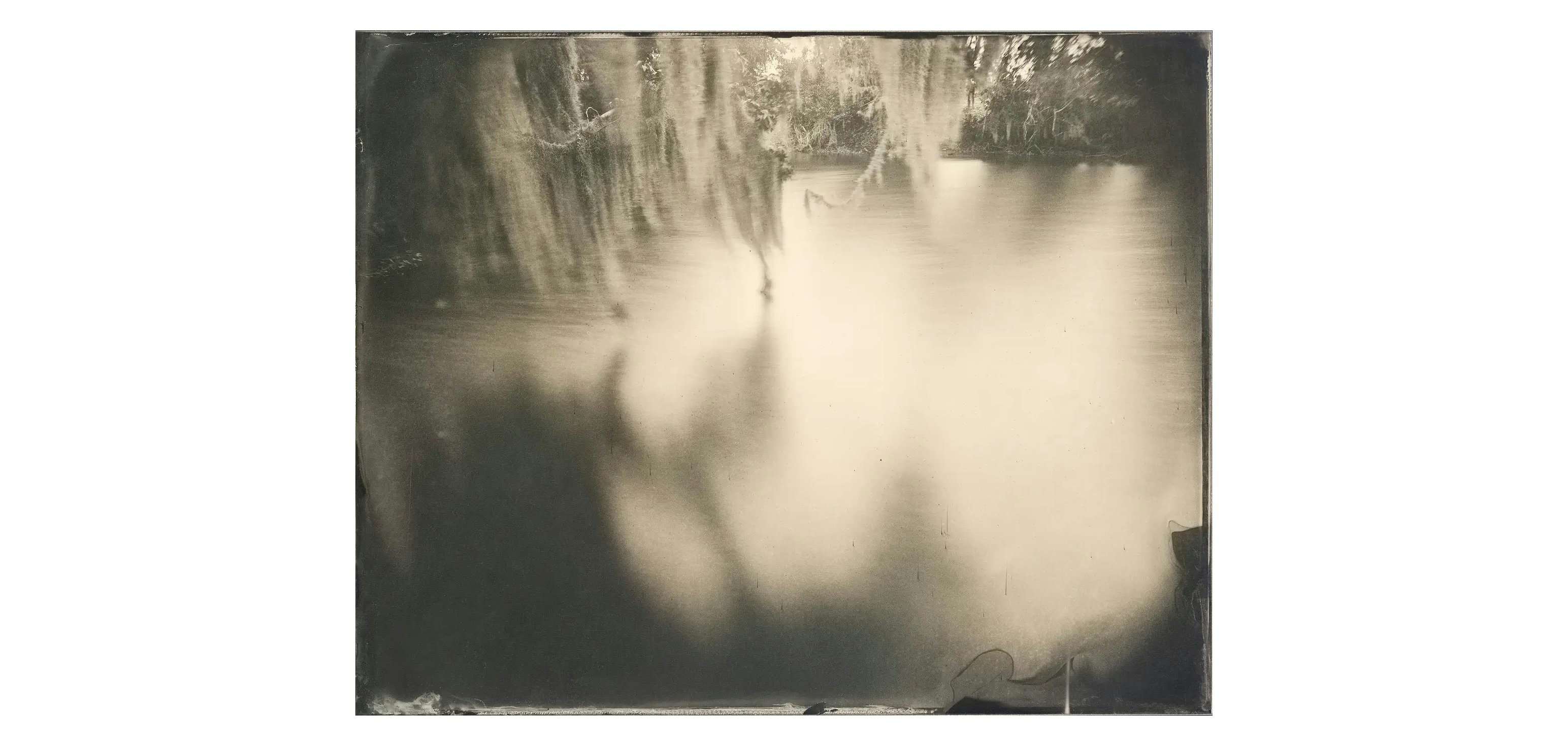 今坂は、1983年広島県生まれ。2007年に渡⽶し、以来NYを拠点に活動している。世界各地の⾃然のなかで、気候や⾵景の変化を観察しながら時間をかけて映し出す今坂の作品は、古典的な湿板写真という撮影方法を用いて作品を制作している。この撮影技法では、撮影中にカメラの前を通り過ぎた人影などが、おぼろげなイメージとして記録される。それらは、「あたかも永続的にそこにある⾃然と人間との対⽐であり、⼈間以後の⾵景という未来像を思い起こさせる」と今坂は語っている。