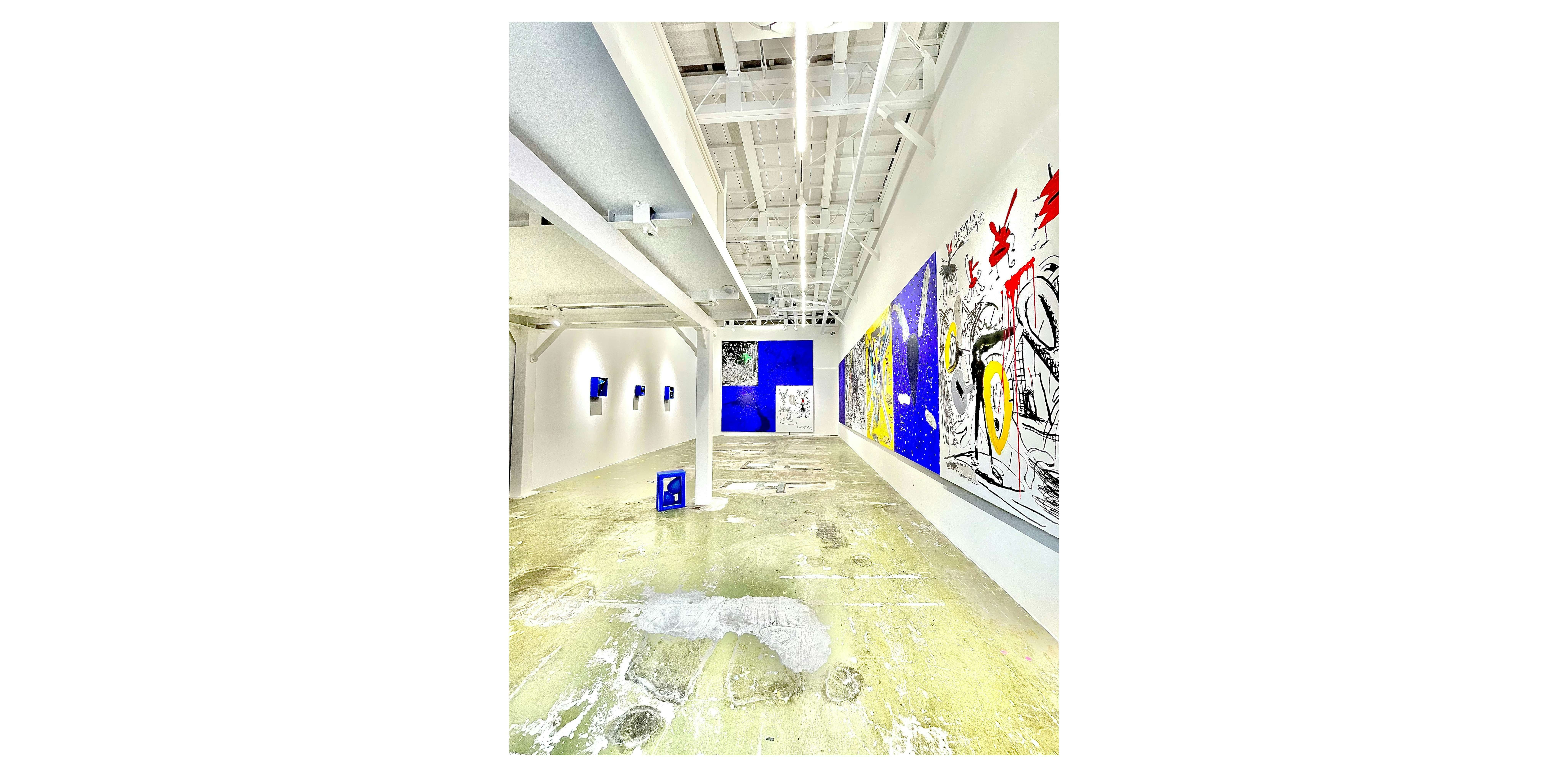 今回はオープンを記念して、黒田アキと近藤髙弘の 「BLUE」展を開催。ふたりは約30年前に近藤がひいた器に黒田が絵付けをしたことをきっかけに交流が始まった。この数十年間、現在に至るまで数度にわたりコラボレーション。黒田のblueは隣人であったミシェル・フーコーが好きだった 「官能的なBLUE」であり、その深淵さは多くの人を魅了してきた。また、近藤のblueは、近藤悠三から引き継がれた「近藤blue」。本展では、両者ともが各々の新しい「BLUE」を創出する。