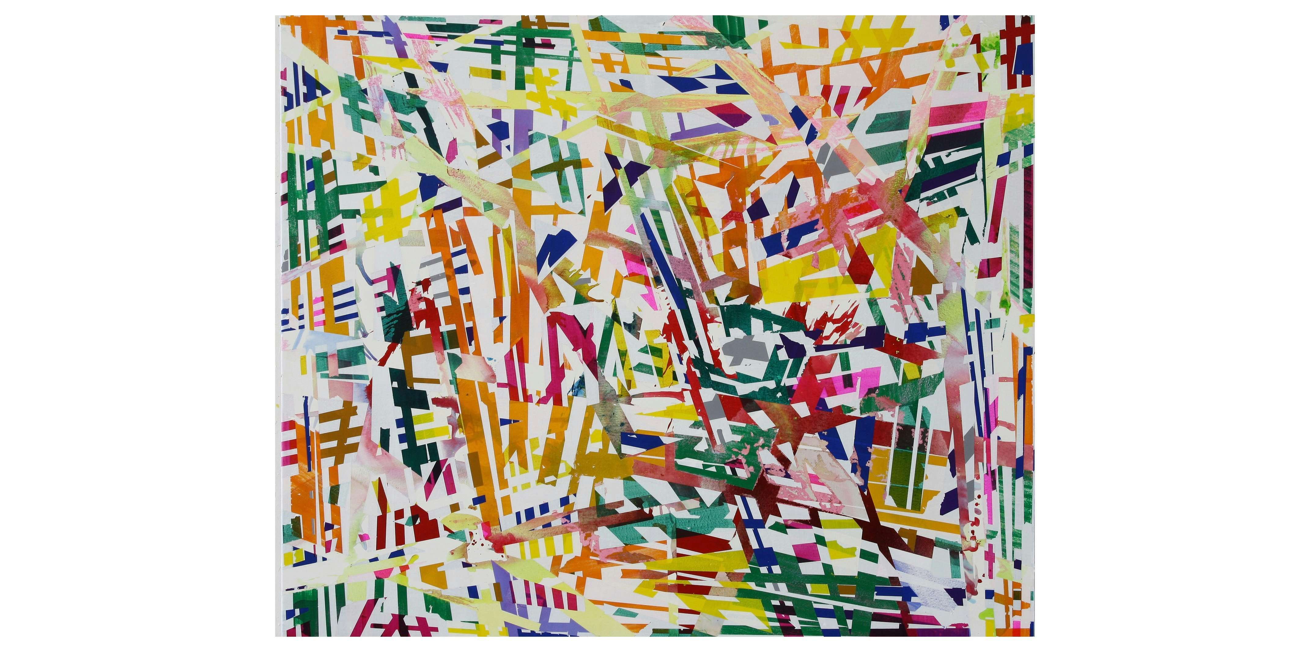 本展では、美容室という「水」がある空間において、松本の作品の素材である水溶性のアクリル絵の具の特性を活かした「Dropping line」の新作と「scramble tape」のdroppingバージョンの作品が展示されている。