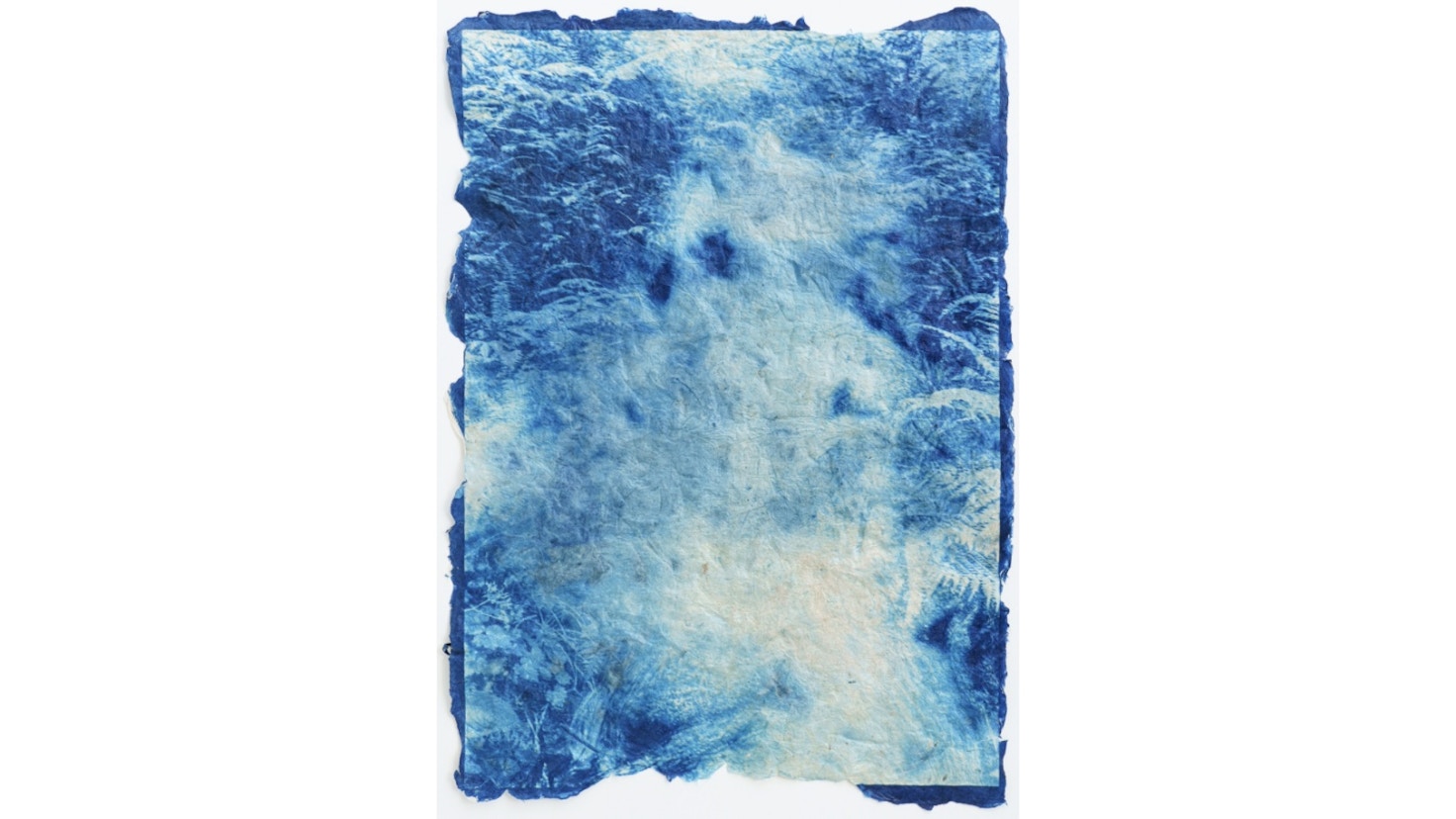 堀江は住居兼アトリエである古⺠家近くの山から、高級和紙の原料として有名な雁皮を採取し、側に流れる天然水を用いて和紙を漉き作品の支持体とする。自身で手づくりした手漉き和紙に、四季折々に変化する自然の風景をサイアノタイプで映し出した作品は、海外の展覧会に参加するなど国内外で注目を集めている。
