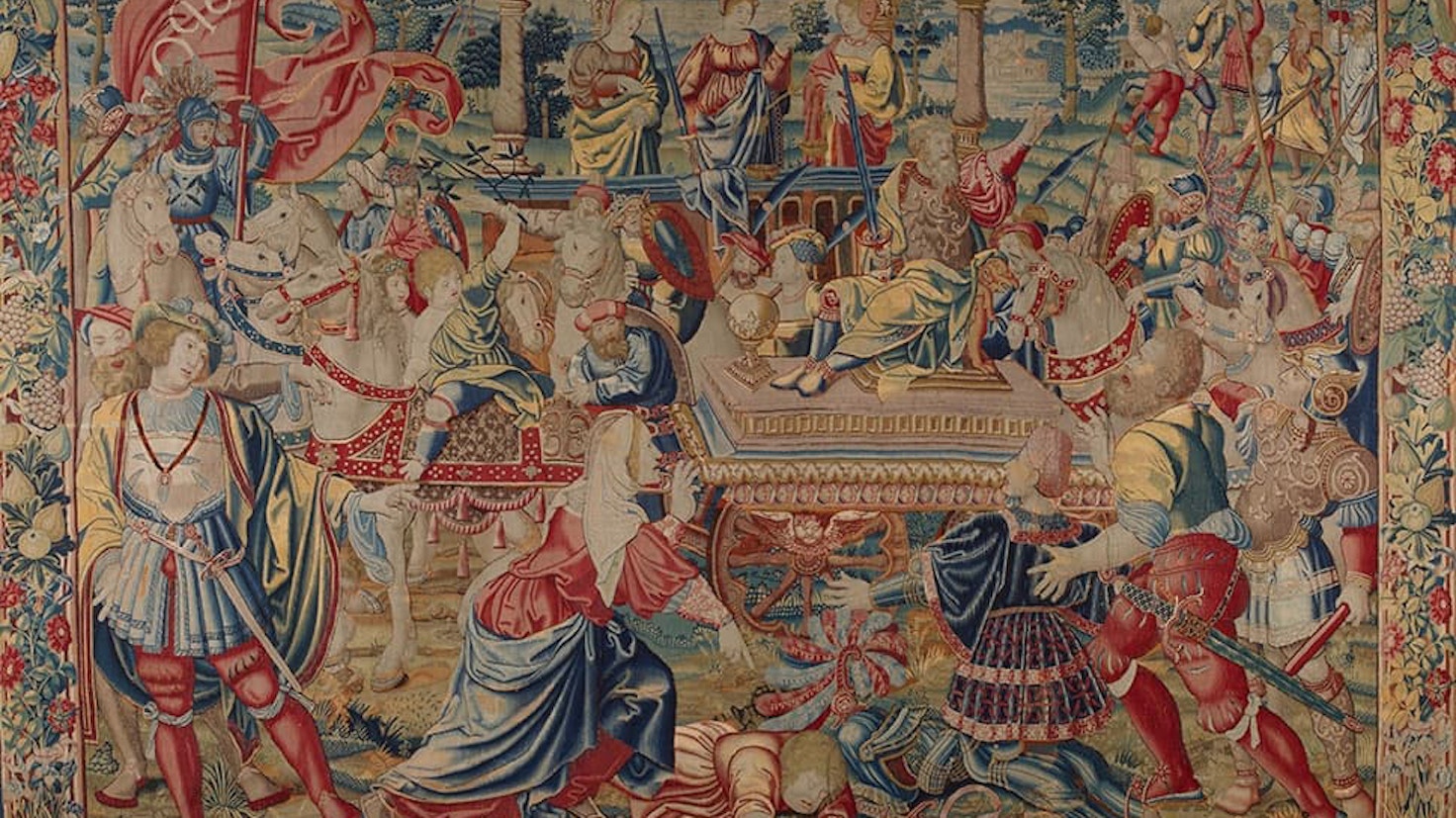 様々な色を用いた羊毛や絹糸などの経糸を緯糸にかがり、絵や文様が織り込んでいくタピスリー。起源は古く、綴織の技法という点では、グレコ・ロマン時代のエジプトまでさかのぼる。