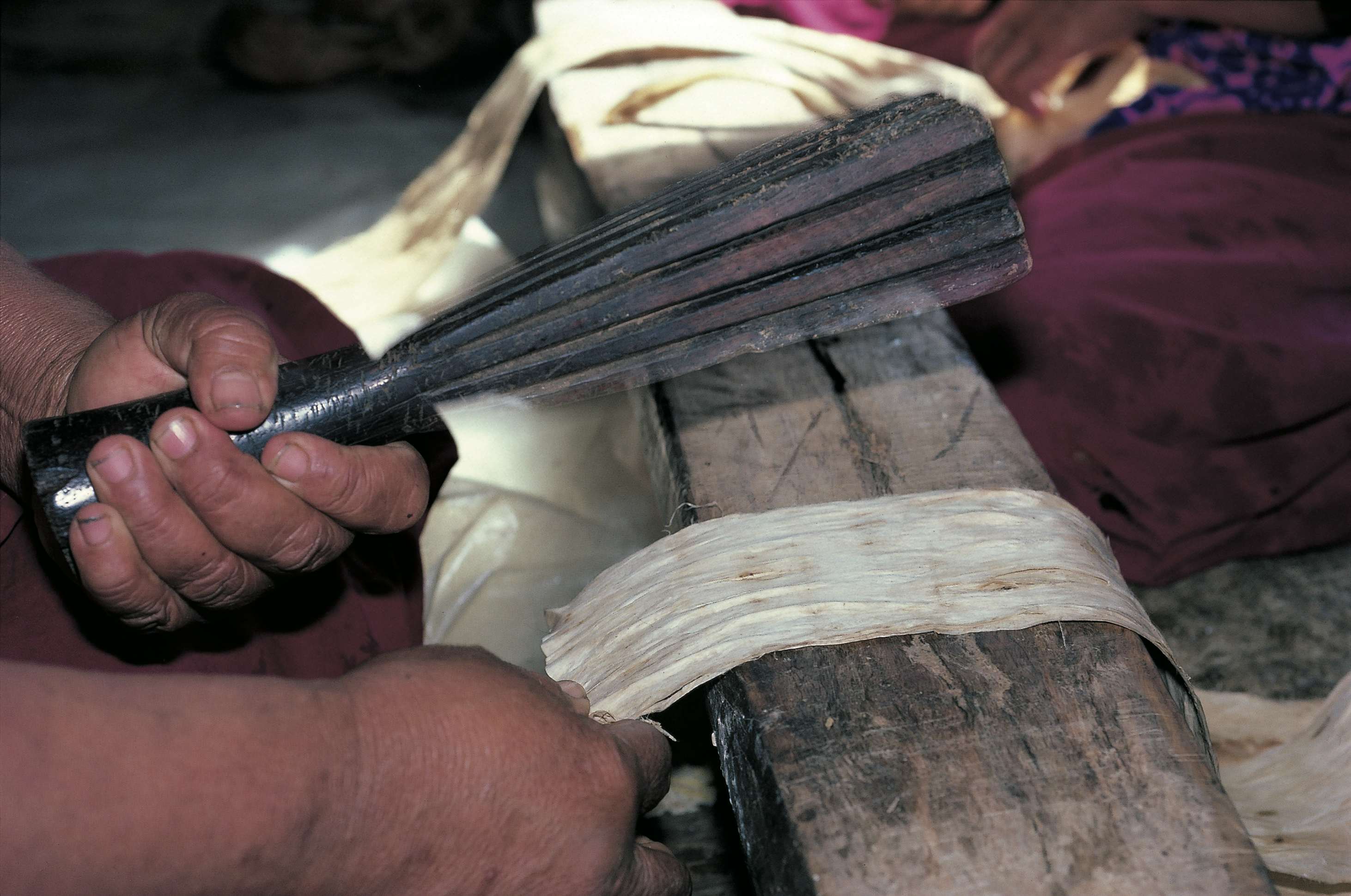 身近にある植物や羊毛を使い人々の手を介して生み出された原初の布であり、衣服だけでなく儀式や結界、住居の装飾などの用途で暮らしと密接に関わり、長く利用されてきたタパとフェルトに焦点を当てる。