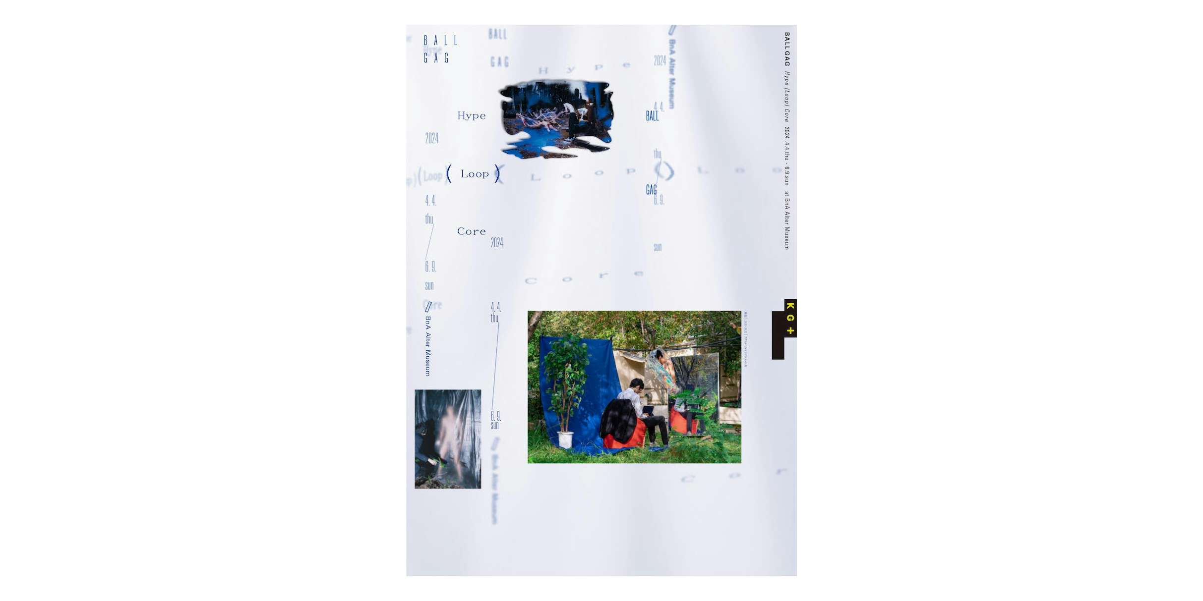 SNS空間内において人間は、機械が取捨選択した「情報の推薦」によって無自覚に選択の幅を狭められているが、それと同時に受容する情報の純化(=コア化)を進められているとも言える。BALL GAGは情報の純化を引き起こす環境(=アーキテクチャ、狭義な意味ではプラットフォーム)が様々な現実のアクター(因子)に働きかける様子、そしてそのなかで見出される美学(純化された趣向性=コア)とそれを信奉する集団を、寓話的にかつ造形的に考察する。