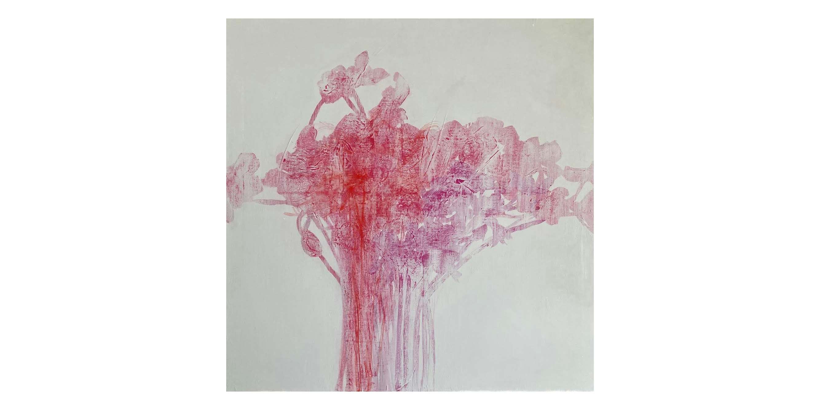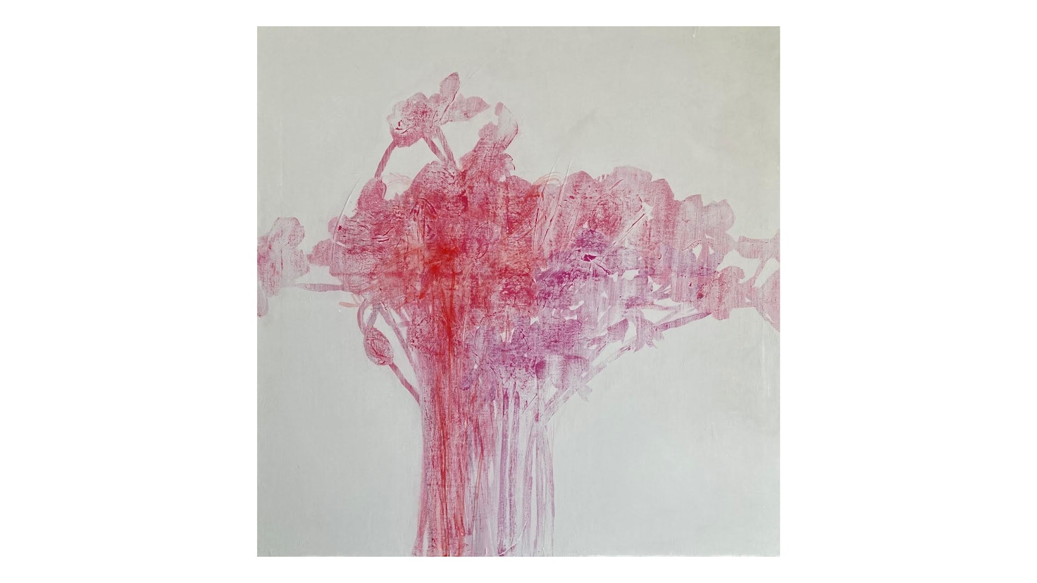 永田は1960年静岡県島田市生まれ。彫刻から学んだ知識や技術を空間認識の構築に活かし、花と呼吸をするように作品を描く画家だ。