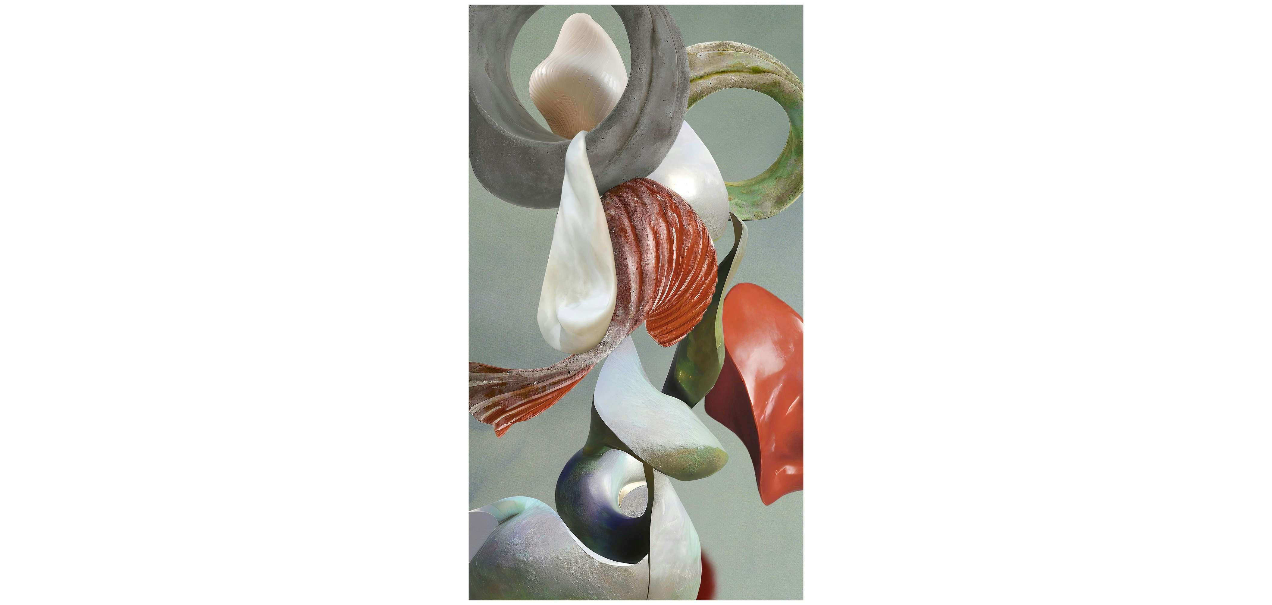 同廊で2度目の展示となる本展では、スキャニングしたイメージをAIに学習させて生成したマテリアルを積極的に取り入れた作品群を紹介。スキャンという身体的感覚を通じて取り込まれたイメージと、AIが自動生成したオブジェを融合することで、有形とデジタルの境界を曖昧にしようとするフェナの新しい試みに触れることができる。