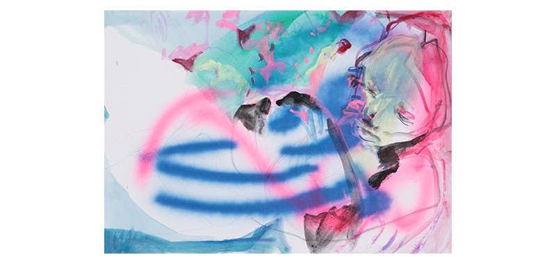 土取は、親密な関係性にある2者や、1人の人物のなかにある別個の存在をモチーフに、それらが溶け合うようなペインティングを制作してきた。大きく「I and You」と「a scene」の2シリーズに分類されるそれらでは、主客が入り乱れ、あらゆるボーダーラインが滲んだような濃密な空気を表現。そして土取にとって、ドローイングは身近なものであり、絵画とはまた別の広がりを持つものとしている。