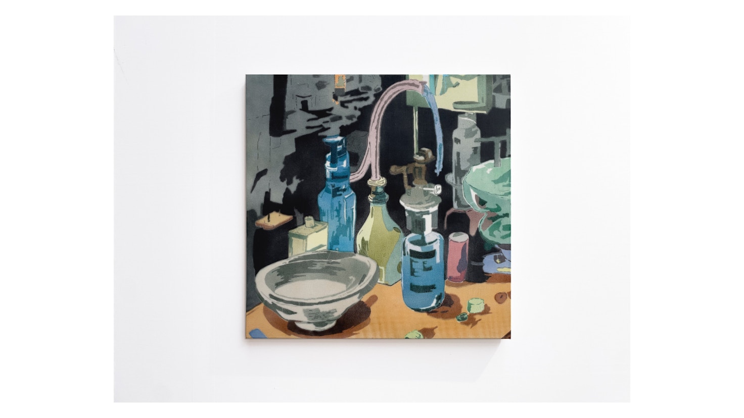 林は暮らしのなかで見聞きした私的な場面を、そのイメージと関わりある材料を意識的に選択しながら作品を制作。それは例えば庭に自生していた植物を煮出して顔料化した自作の絵具を用いたり、生きていくうえで関わりの深い素材を材料に選ぶことで、生きることと絵を描くことをつないでいるという。また繰り返し描かれるモチーフ、部分的に描き込まれたディティール、素地の余白、それらは絵画空間においてより現実感をもって作家の視点を浮かび上がらせる。