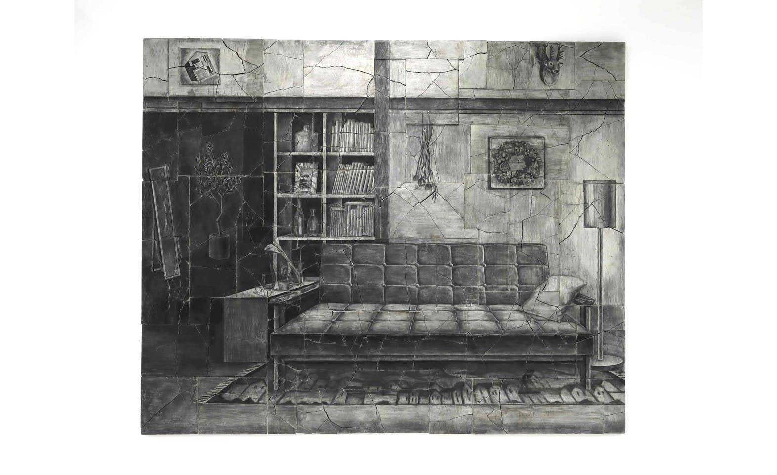 佐野魁は、自身の生活のなかの「具体的な(Concrete)」風景を、コンクリートの上に画面定着のしづらい木炭によって描く。コンクリートは私たちの生活を支える堅牢さと脆さの両方を象徴しており、木炭とコンクリートの組みあわせによって、私たちの日常生活は決していつまでも続く盤石なものではないことを示唆している。