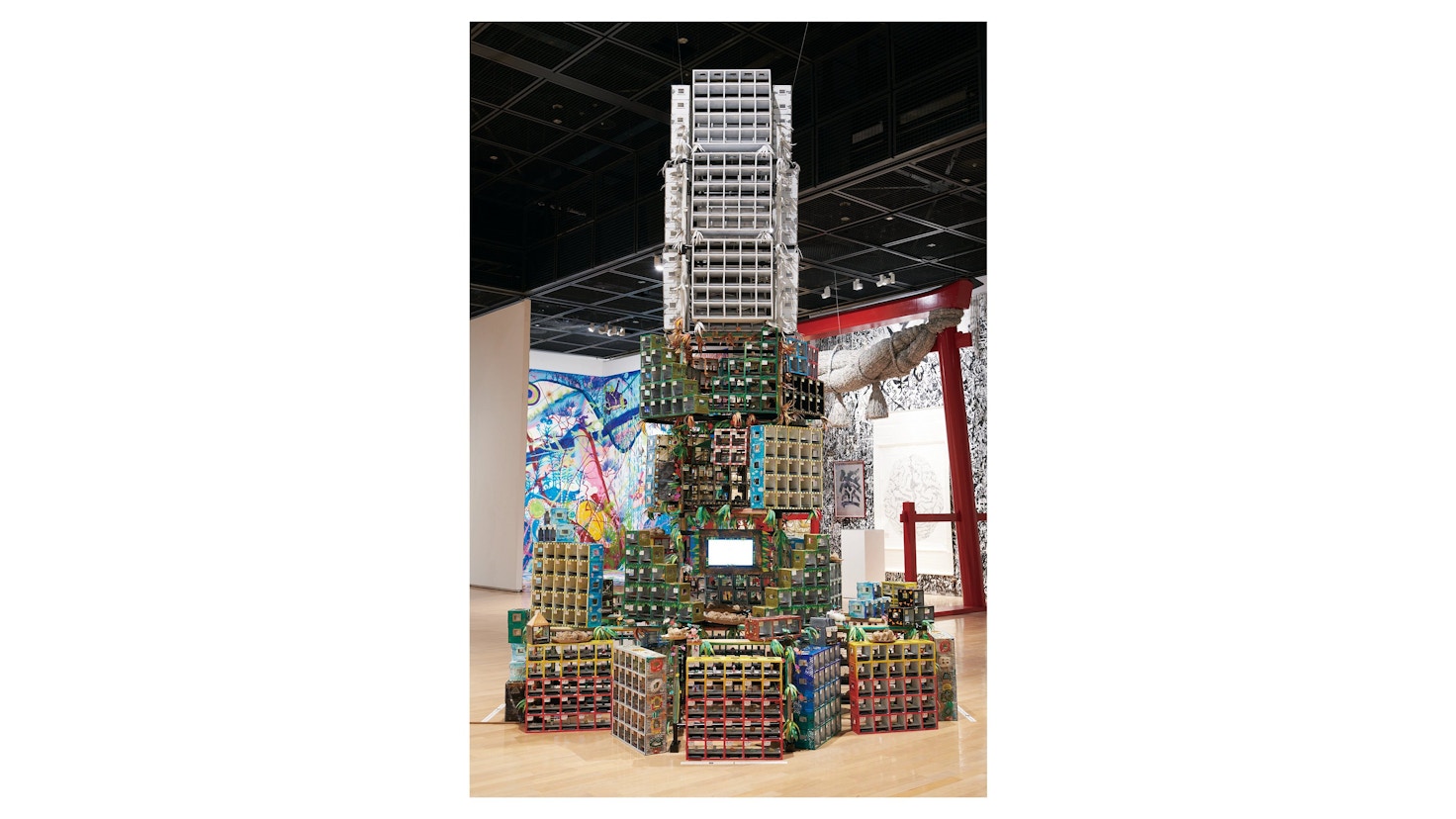 会場では、岡本太郎賞受賞作品として川崎市岡本太郎美術館で初公開された高さ約5メートルのインスタレーション《今日も「あなぐまち」で生きていく》(2023)を中心に、絵本原画や新作ドローイング、不知火美術館・図書館の空間を活かしたサイトスペシフィックな展示を展開。ダイナミックなインスタレーションと、個性的な「あなぐまち」の住人たち一人ひとりへの繊細な眼差しが共存し、大人も子供も惹きつける魅力的な世界が広がる。そして、「現代美術」という枠組みを超えて、生きることとつくることが結びつく芸術の根源的な意味へと導く。
