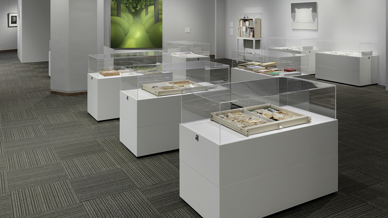 また、近年、「文字」「テキスト」にこだわり、「読書」にアプローチした作品を発表する藤本由紀夫をゲスト作家に迎え、作家にとって初の試みとなる実際の図書フロア、書架を使った作品も展示。