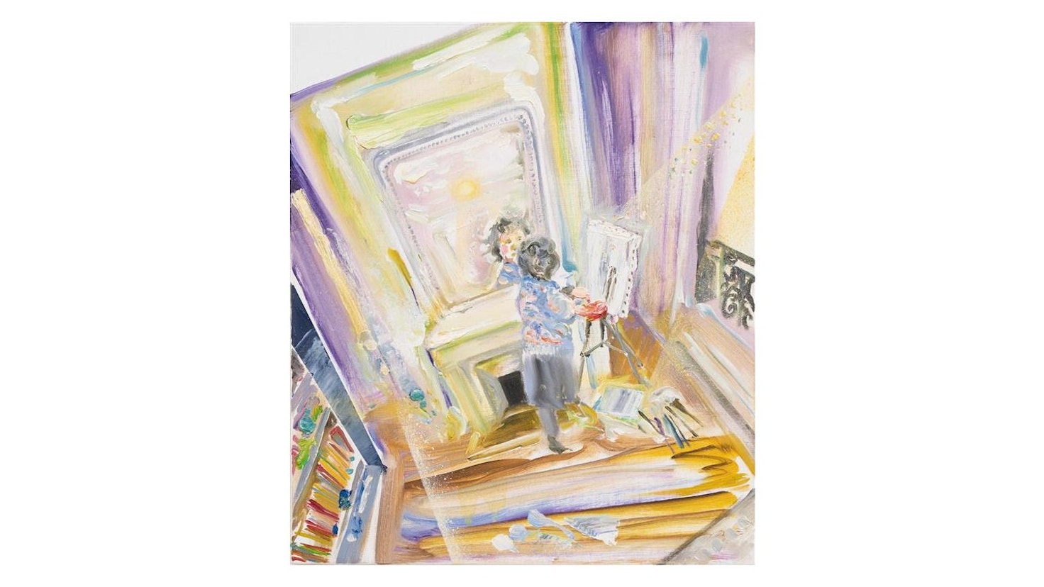 近年、在外研修でパリに赴き制作を進めるなかで、何を描いて / 何を描かないかを改めて考察し、むしろ描かなかったことで広がる無限空間に着目。「変顔」を描く「上手さ」に通じるリアリズムから距離を置き、入れ子状(鏡を通して自分を見ている自分を天井の視点から描く)の視点から描いた自画像や、少女漫画のような素敵な自分ではなく、憧れのパリに居て朝起き抜けで髪がボサボサな(しかしルーブル美術館のトレーナーを着ている)自分自身のリアリティを描き、鳥瞰する視点が絵画に現れるようになった。年齢を重ねいまある自分自身と、脳内アニメ的自分との乖離が、松井えり菜の場合は大きいのだという。