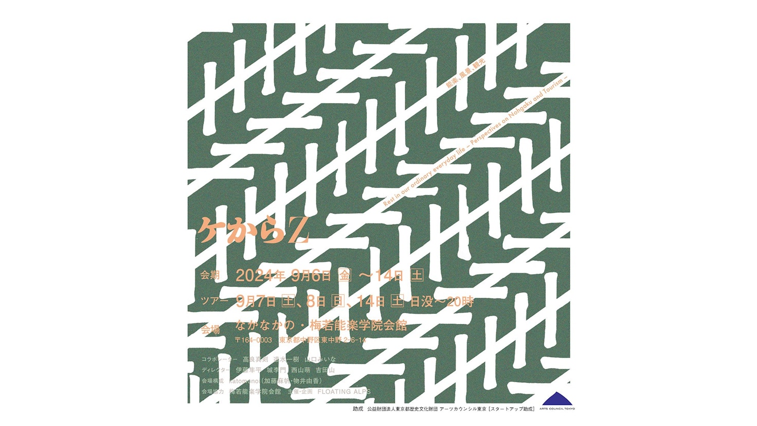 カフェ・なかなかの、梅若能楽学院会館で、「ハレ→ケ」への移行をおこなう展覧会「ケからZ ー能楽、風景、観光ー Rest in our ordinary everyday life –Perspectives on Nohgaku and Tourism–」が開催される。