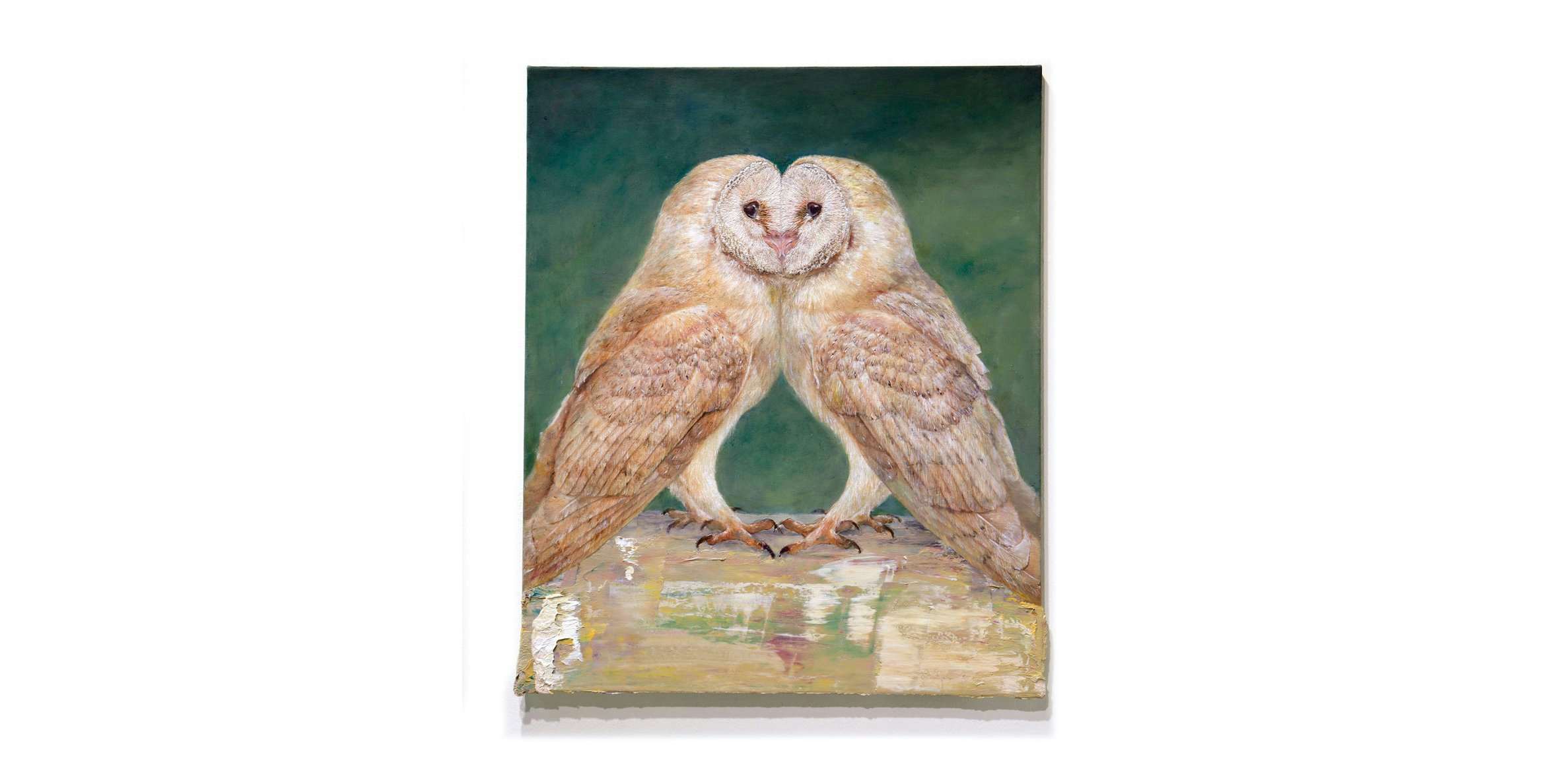 動物をモチーフに油彩と刺繍を用いて描かれる佐藤の作品は、油彩ならではの柔和な艶と刺繍の質感が織りなす柔らかさに包まれ、人々の内に眠る自然との対話を促す。