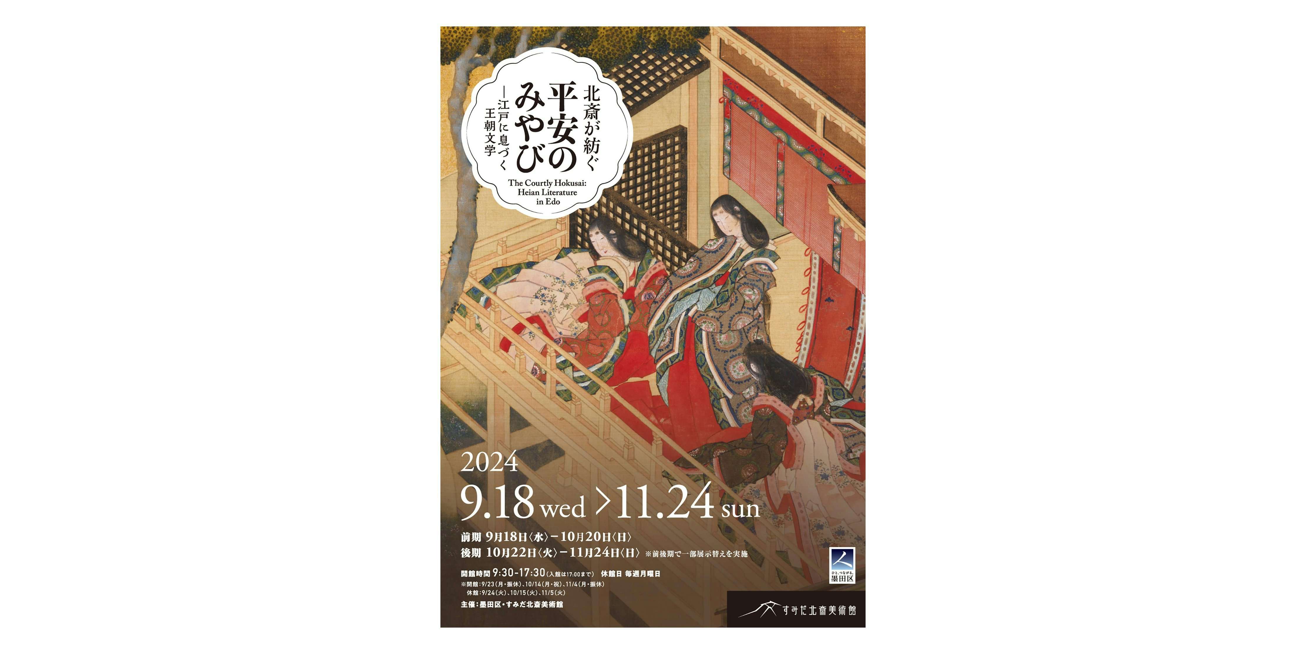 本展では、北斎たちによる平安時代や王朝文学に関する作品を展観し、北斎らが抱いた平安時代のイメージ、王朝文学の世界観とその広がりについて紹介。江戸時代に息づく平安のみやびに触れてみてほしい。