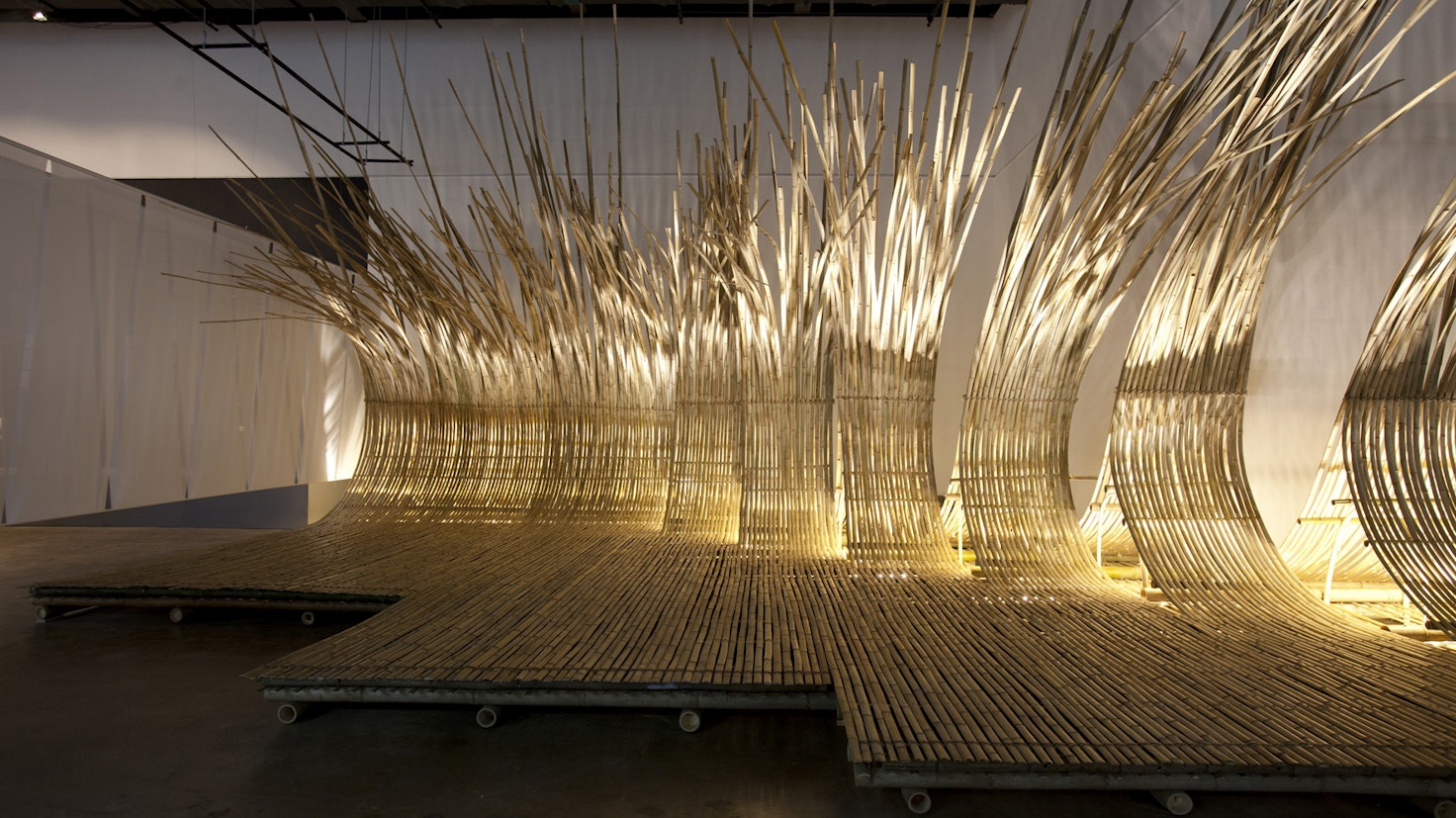 本展では、隈が仕事を通じて対話を重ねてきた素材に着目し、竹、木、紙、石、土などの主要なマテリアルを分類・整理することで「もの」という観点から概観。「もの」の開放によって、人の感覚や意識、そして環境を媒介する建築の可能性に迫る。