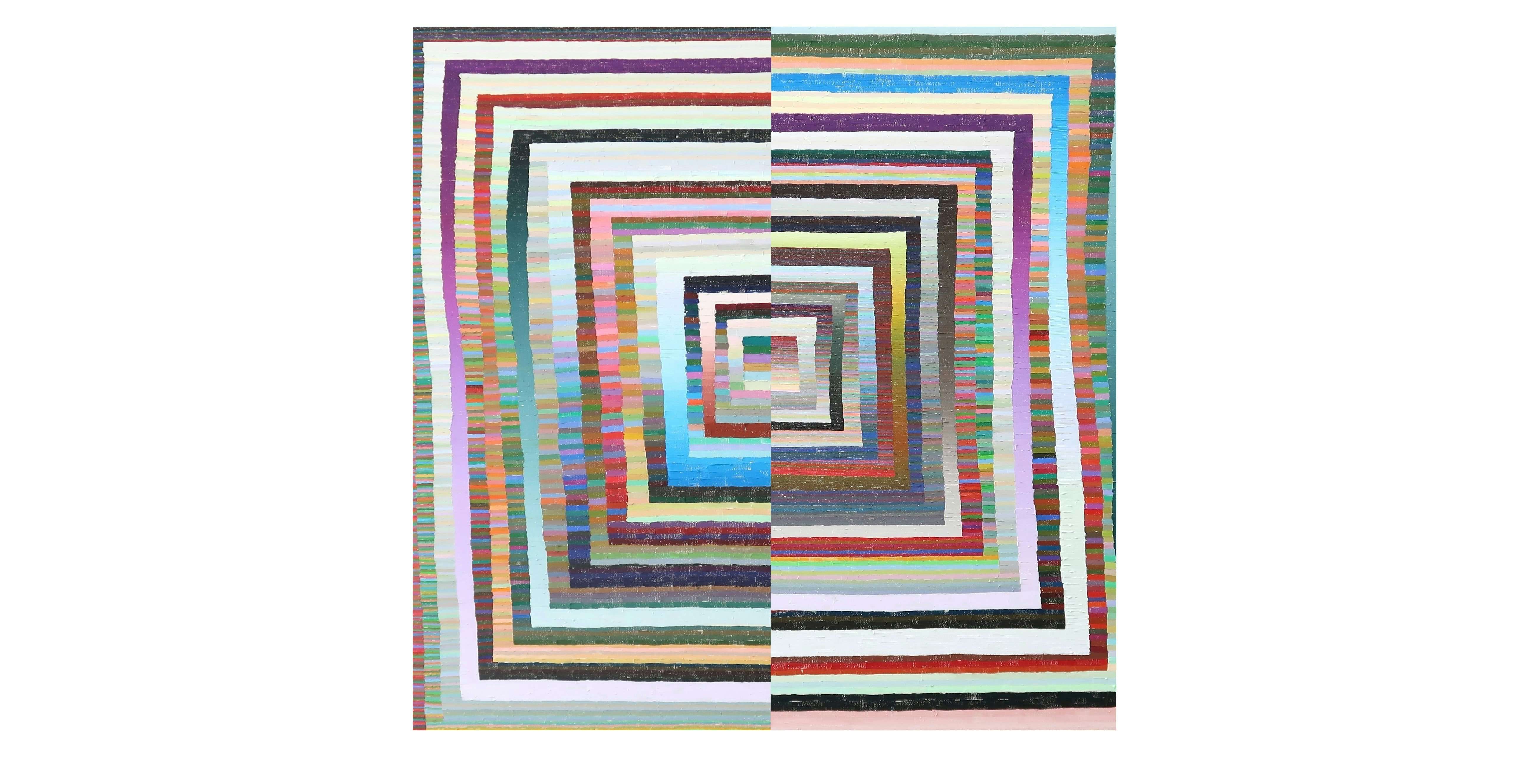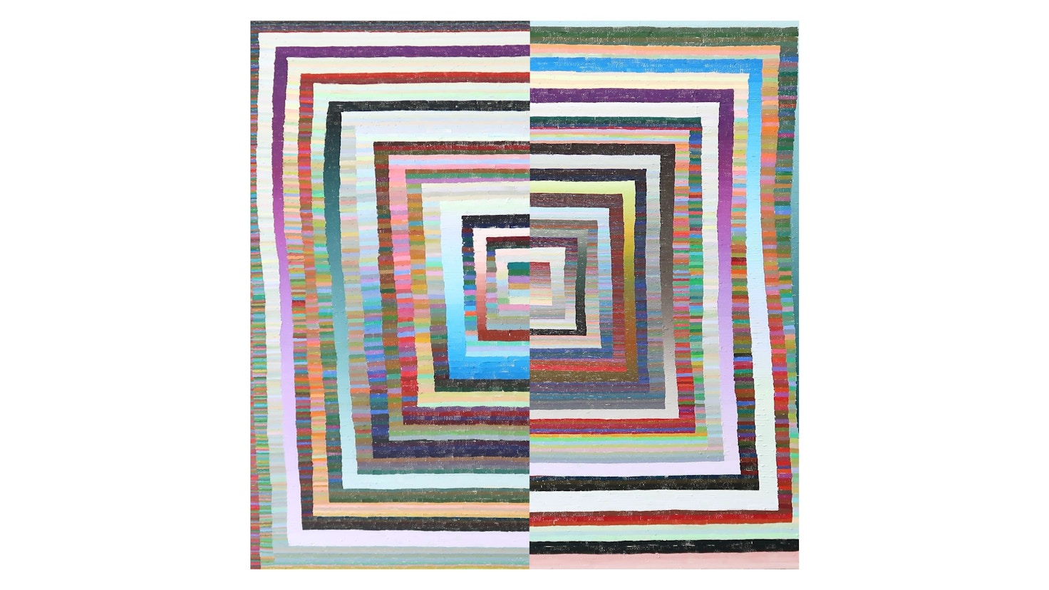 本展では、作家がこれまで探求してきた「色」「形」「空間」という3つの要素に焦点を当てた作品が出展。とくに修了制作展で発表した120号の大作に新作を加えたシリーズは、線が織りなす複雑な空間が描かれ、作品内に存在するふたつの遠近法を融合させることで多層的な空間が生み出される。