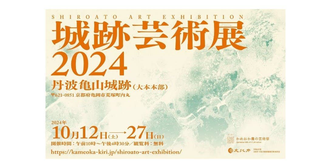 「城跡芸術展2024」が開催されている。本祭は、歴史と文化が折り重なる場所である丹波亀山城跡(大本本部)を舞台に、亀岡にゆかりの深いアーティストが展示を行う、「かめおか霧の芸術祭」の企画展だ。水面に映る城壁や、植物園の小道にさす木漏れ日、赤松の林の黒い影、城跡そのものが作品であるかのような会場はひとつの文化的聖地となっている。