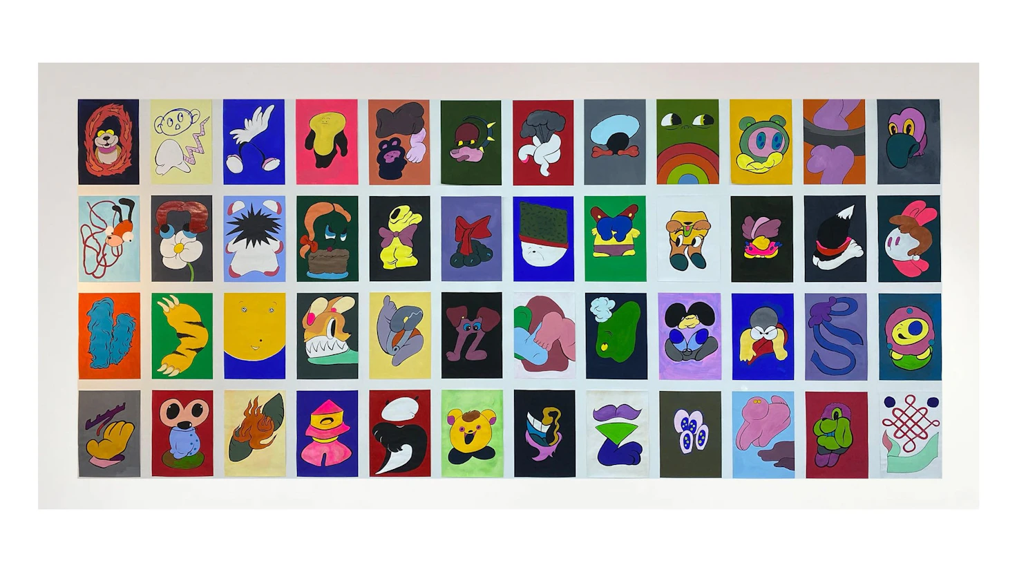 〇〇には既に展示したことのある作品、あたらしい作品、Tシャツや作品集などのプロダクト、映像作品や立体作品、さらに習作なども混在させ、同列に展示。「~展」として切り取られたその瞬間の作品だけではなく、これまで、現在、これからと作家の人生そのものをアーカイブし、更新し続けることを目的としている。