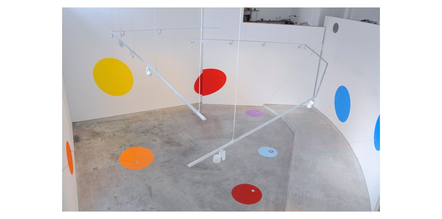 本展では、白石が夢で見た風景をもとに、ギャラリーの空間を存分に使った色彩による展示構成を行っている。白石が近年取り組んでいる「imaginary architecture(想像のなかの建築)」として、ロンドンで行われた「Through」(Annely Juda Fine Art)に続き、東京では「枝分かれの庭」が展開。