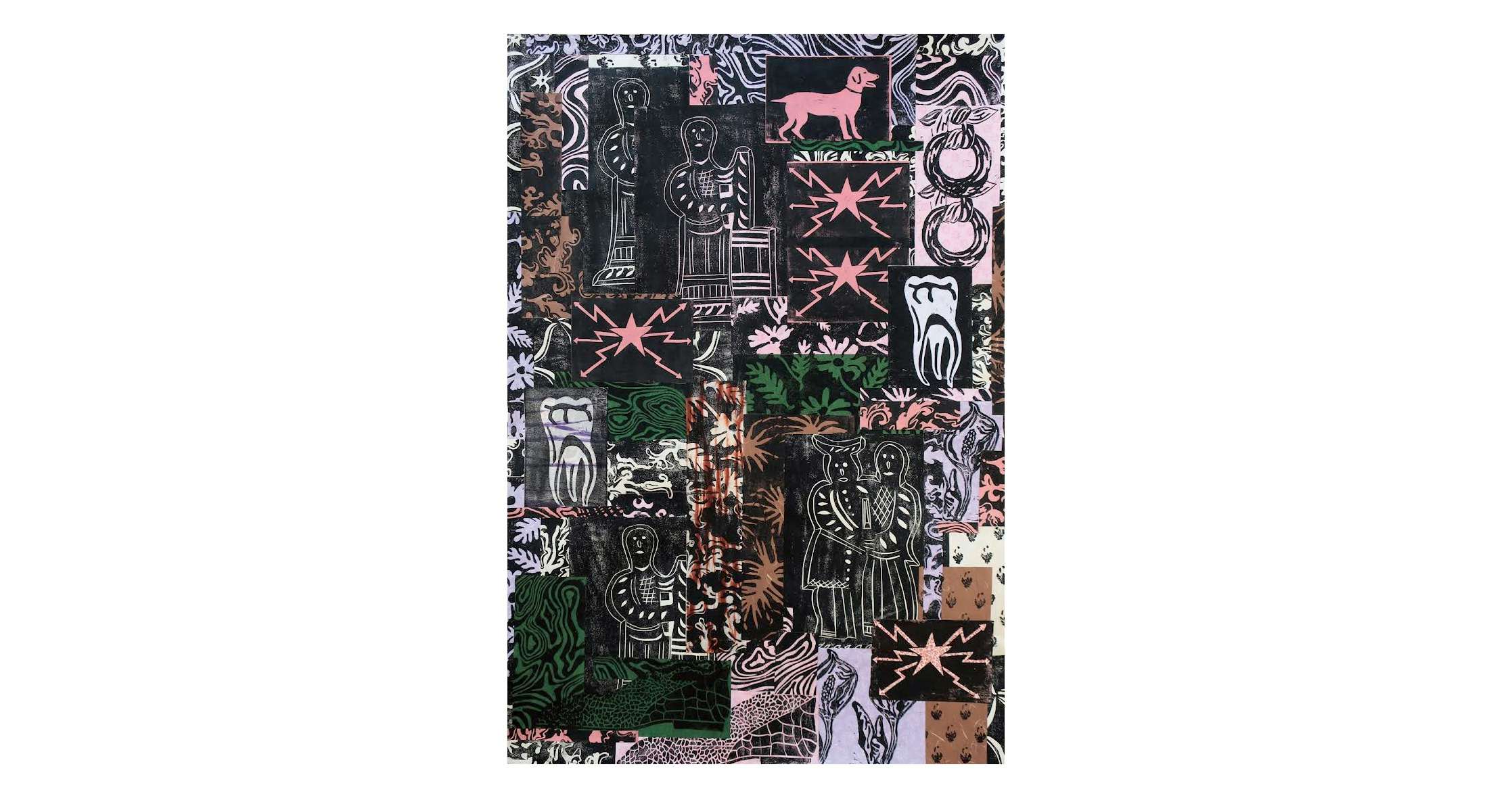 紙や布に木版を刷ったり、ものを押し付けて摺るフロッタージュを併用して唯一性の版画を展開する大竹笙子。 小さな版木を繰り返し使用し素朴で複雑なイメージを創出している。