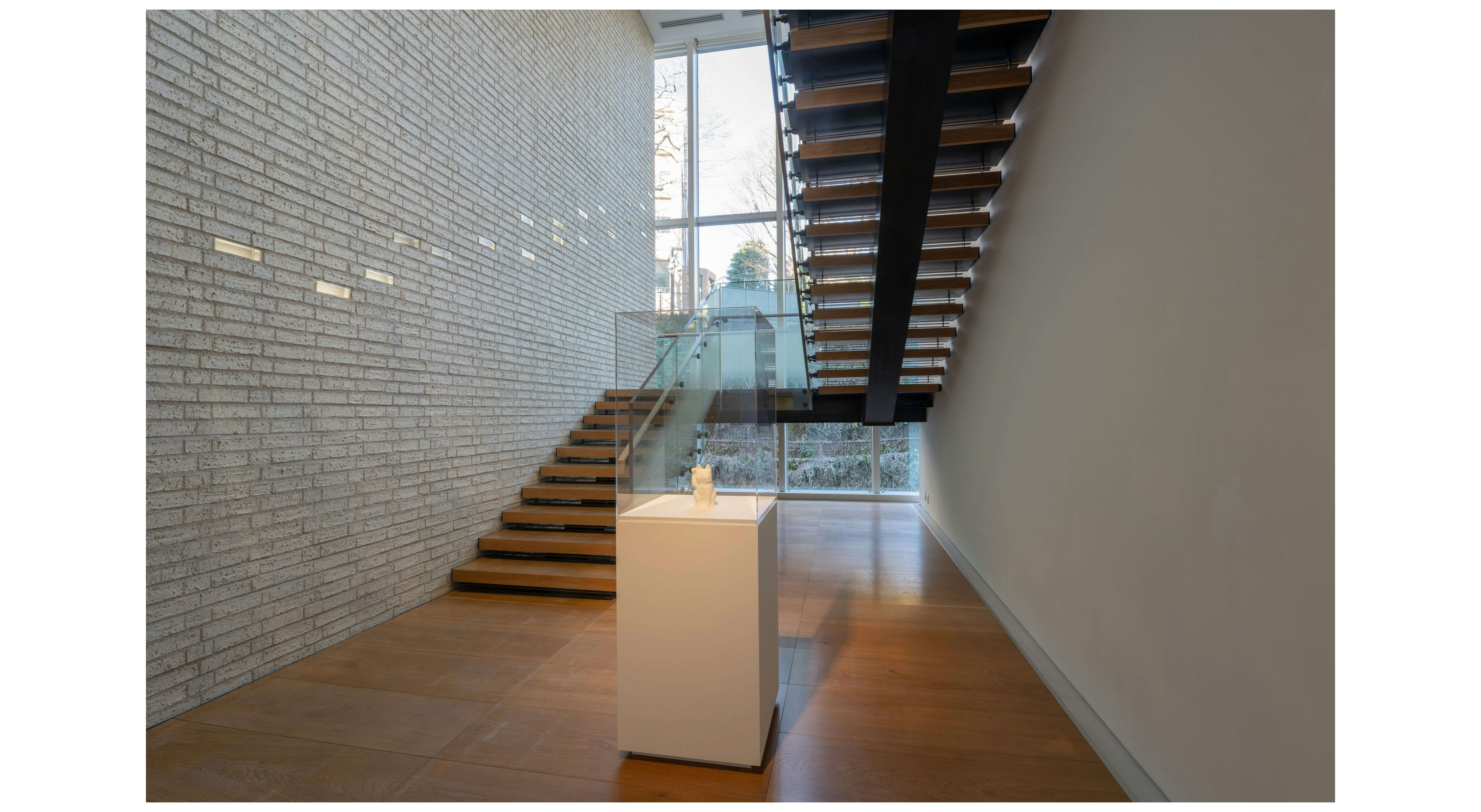 新しい展覧会シリーズ「ふとした点景」は、展示室で行われる展覧会だけでは見ることのできない、大学のコレクションや美術作品、学術資料に光を当てる企画だ。会場は、屋外の風景に開けた階段踊り場のスペース。「ふとした点景」とは階段の踊り場に展示されたオブジェクトと、それを含みこむKeMCoの吹き抜け空間の景色のことを指している。展示台の上に現れるのは美術作品のこともあれば、学術資料や何かの道具ということもあるだろう。KeMCoという場所で過ごすなかで作品や資料とのふとした出会いを体験できる展覧会となっている。