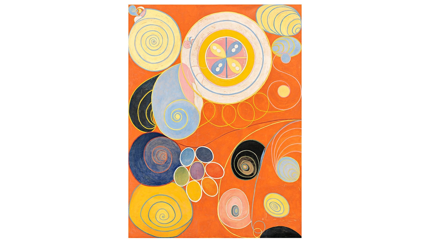 いっぽうで神秘主義思想に傾倒したアフ・クリントは、交霊術の体験などを通して、アカデミックな絵画とはまったく異なる抽象表現を生み出していく。そして1906年から15年にかけて「神殿のための絵画」と呼ばれる全193点の抽象絵画を描き上げる。それらは自身が構想した神殿を飾るためのものだった。その後81歳で死去するまで制作を続けたが、作品はほとんど展示されることなく手元に残された。