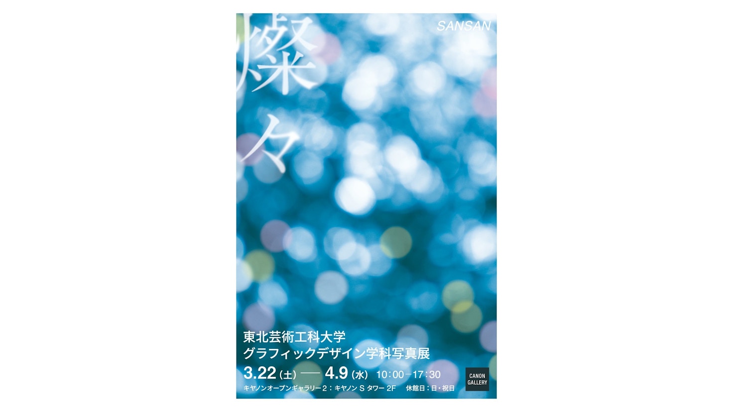 キヤノンオープンギャラリー2で、東北芸術工科大学グラフィックデザイン学科写真展「燦々」が開催されている。