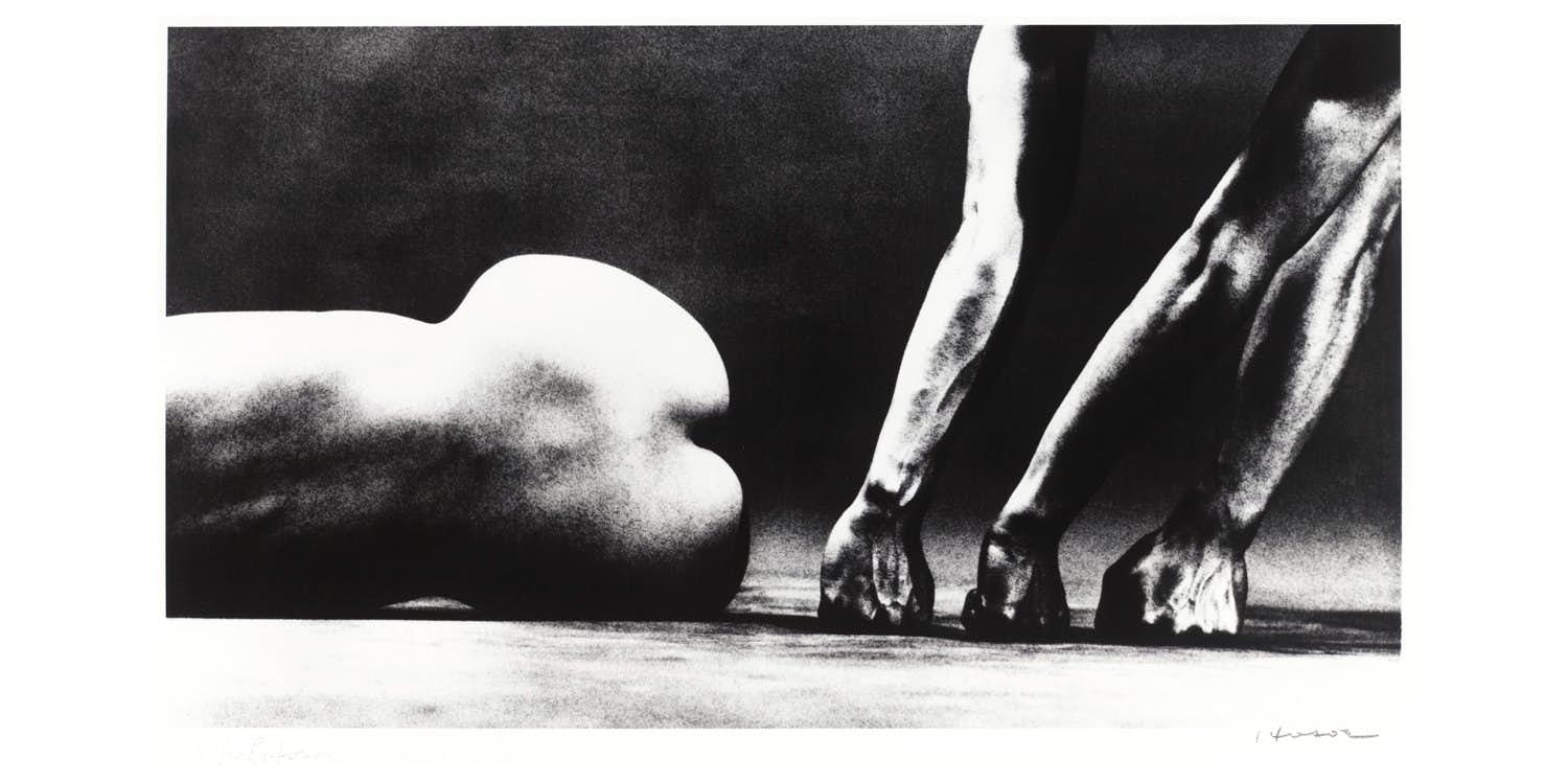細江英公は1933年山形県生まれ、東京育ち。1952年に東京写真短期大学(現東京工芸大学)に入学し、学生時代から前衛芸術家・瑛九(1911〜1960)が中心となって結成した、既存の美術団体の権威に挑む、自由と独立の精神を尊重する若い芸術家集団「デモクラート美術家協会」に参加。卒業後フリーランス写真家として活動し、1959年同時代の新進気鋭の写真家とともに、写真エージェンシー「VIVO」(エスペラント語で「生命」の意)を設立。1960年代から70年代にかけては、男女の性と肉体をテーマにした「おとこと女」、小説家・三島由紀夫(1925〜70)を被写体とした「薔薇刑」、生地であり戦時中の疎開先でもあった東北を舞台に、前衛舞踏家・土方巽(1928−1986)を被写体とした「鎌鼬」、男と女の抱擁の強さと優しさを視覚化した「抱擁」など、のちの写真史に名を残す作品を生み出した。