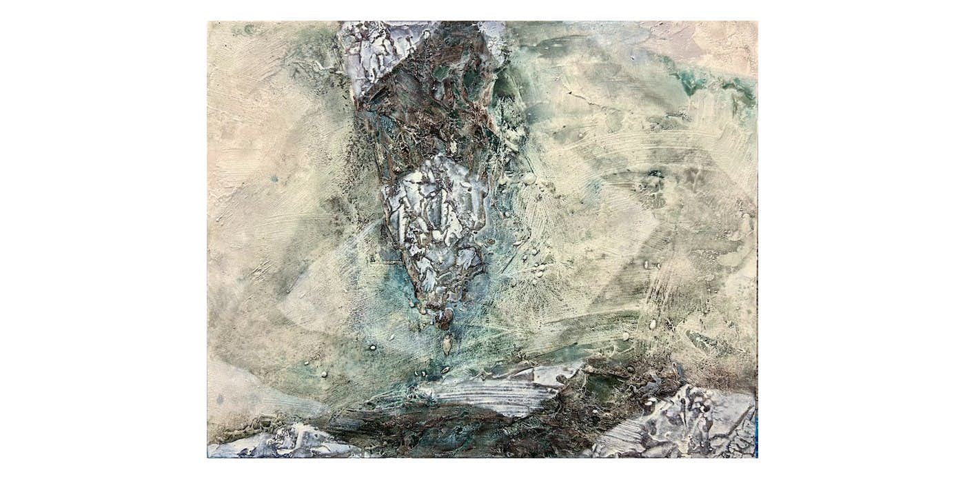 入江は、パネルやキャンバスに石膏を塗布し、マチエールを生み出す独自の技法で抽象絵画を制作。創作は絵画にとどまらず、実際に土をこね、やきものを制作するまでに至る。
