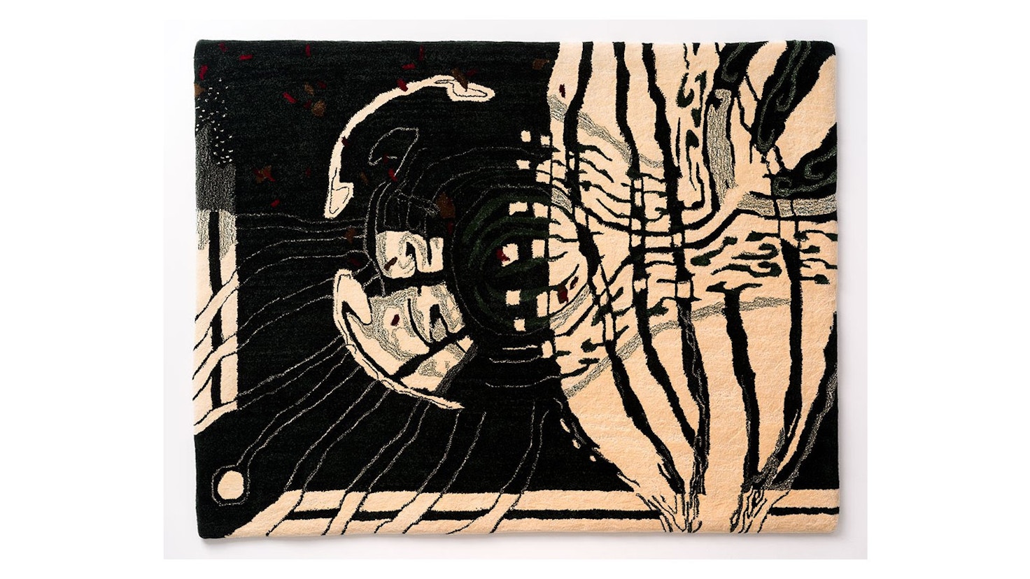 䑓原は、都市の自然や日常の風景をもとにドローイングを構成し、テキスタイル作品に変換する制作を行なってきた。本展では、䑓原が描く細胞や植物、食といった身近な生と死のイメージが、メディア間の転移というプロセスに伴い変化を繰り返す。