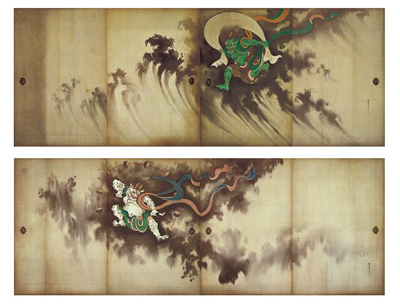 本展では、同館より浮世絵、屏風、襖絵、工芸品など選りすぐりの名品約110点を前期約70点、後期約80点に分けて展示。俵屋宗達から尾形光琳、酒井抱一へと琳派の巨匠たちによって描き続けられてきた琳派の傑作「風神雷神図」のうち、琳派4大絵師のひとりで抱一の弟子でもある鈴木其一の襖絵を九州で初公開するほか、葛飾北斎と歌川広重、伊藤若冲と曾我蕭白らの逸品を展示し、江戸時代に花開いた日本固有の美意識を紹介する。
