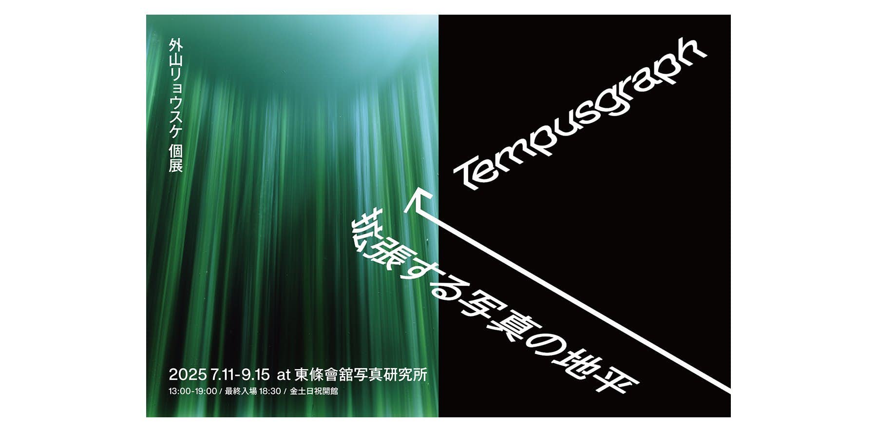写真が生まれるより遥か昔、人々は光による自然現象に驚き、感動し、そこに知性と想像力を働かせてきた。AIの台頭によって視覚表現のあり方が揺らぎつつある現代において、外山は、写真の原点ともされる「光の現象」へと立ち返る。その探究のなかで、時間の姿を写しとる独自の技法「Tempusgraph(テンプスグラフ)」を発見、命名した。ラテン語でTempusは「時間」、Graphは「描く」 を意味する。本展では、この技法を触に、写真という表現の過去と未来の地平を見つめ直すことを試みる。